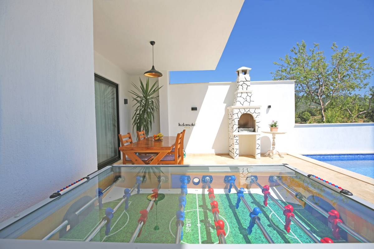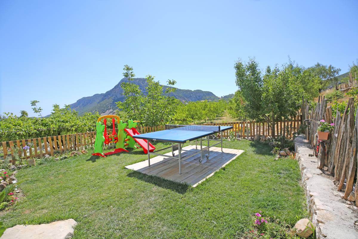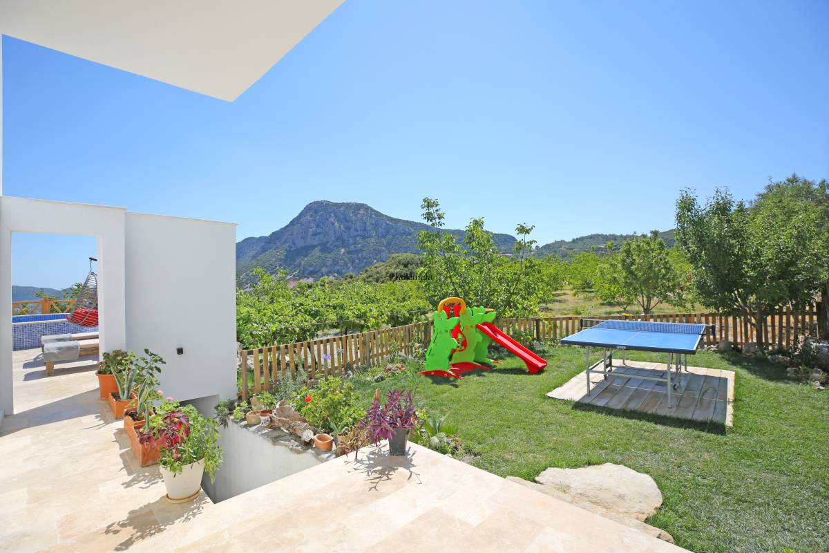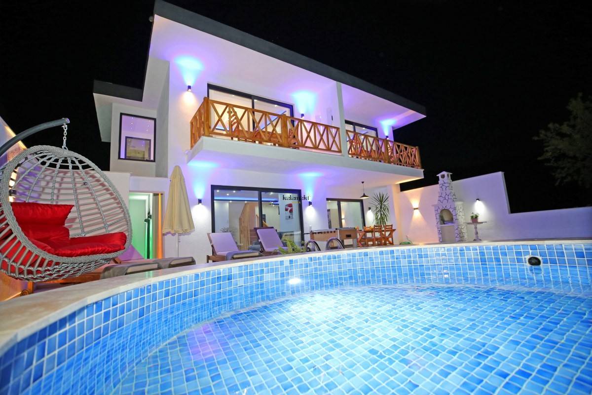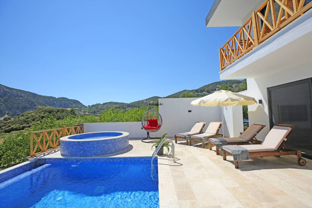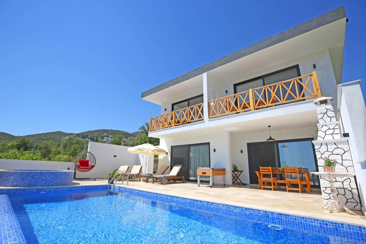 Antalya'nın eşsiz tatil beldelerinden birisi olan Kalkan'ın Bezirgan mevkiinde bulunan villamız, toplamda 4 kişi kapasiteli olup doğa içerisinde, hamam, jakuzi, langırt, masa tenisi, çocuk parkı ve çocuk havuzu bulunan muhafazakar villalarımızdan biridir. Havuz başında bulunan yuvarlak çocuk havuzumuzun aynı zamanda jakuzi özelliği bulunmaktadır. Villamız, balayı çiftleri ve çekirdek ailelerimize hitap etmektedir.
