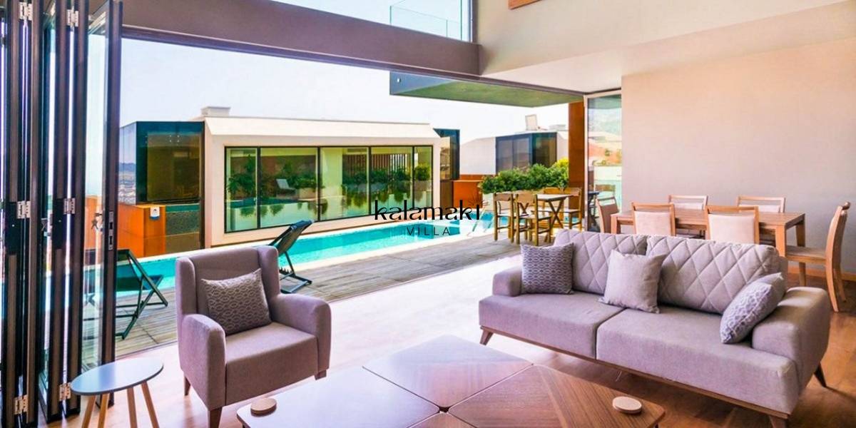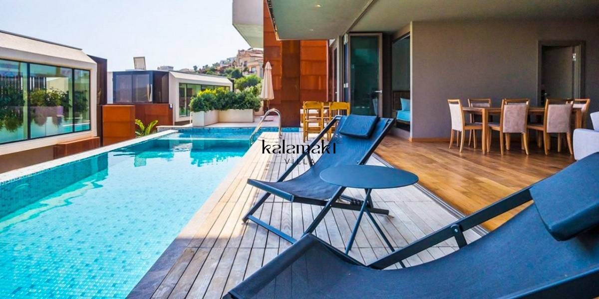 3. Yatak Odası : 1 adet çift kişilik yatak, klima, makyaj masası, komodin, elbise dolabı, banyo ve tuvalet salon katındadır. Havuz katında yer almakta olup, havuza açılan kapısı bulunmaktadır.