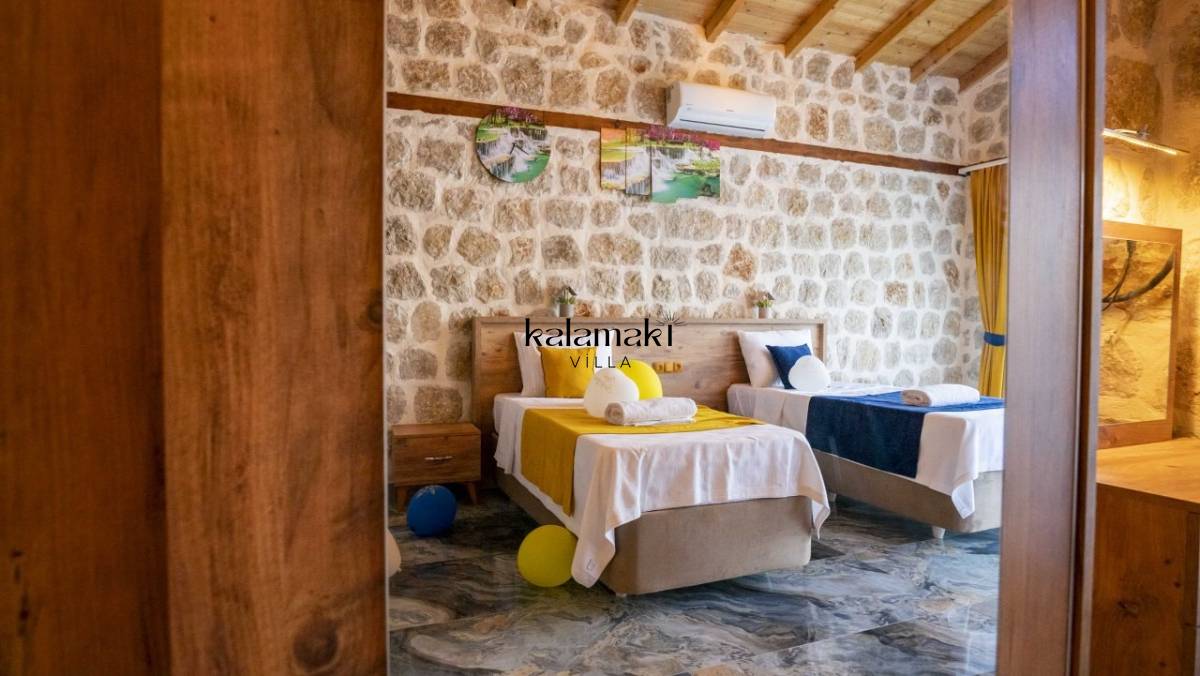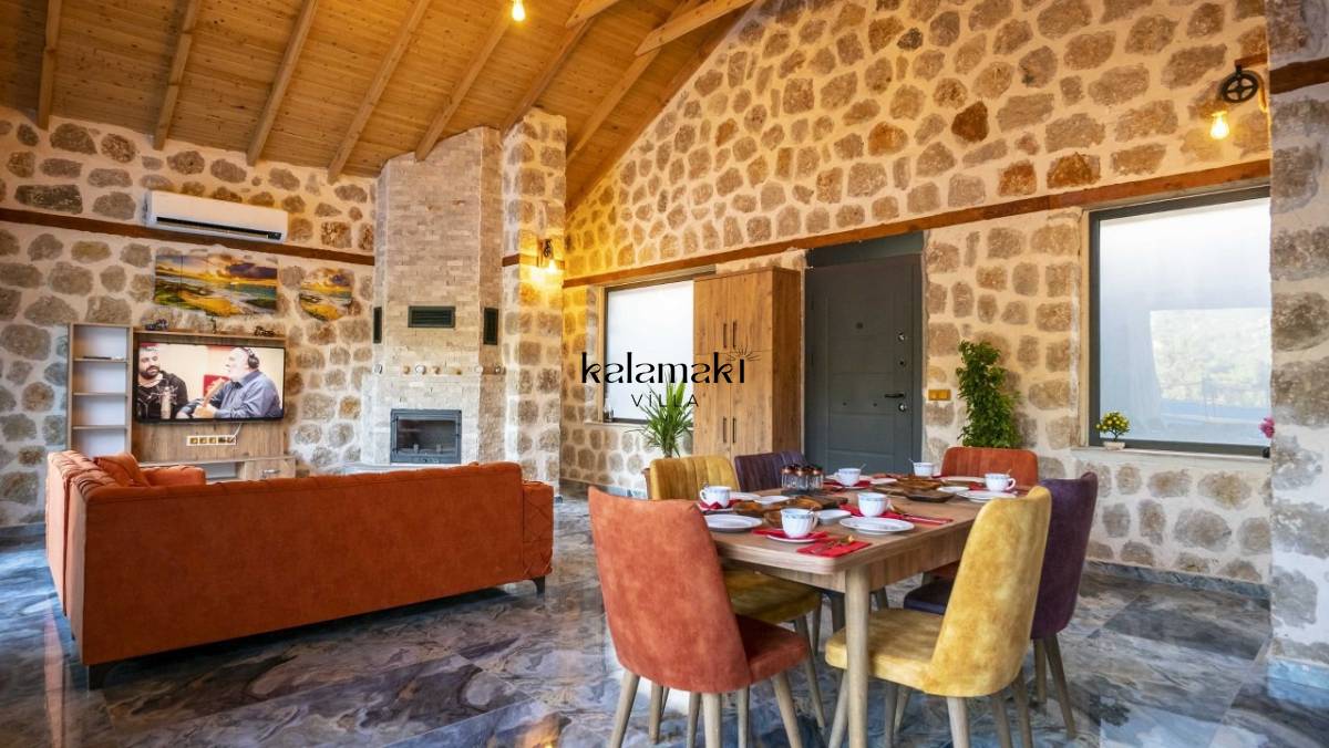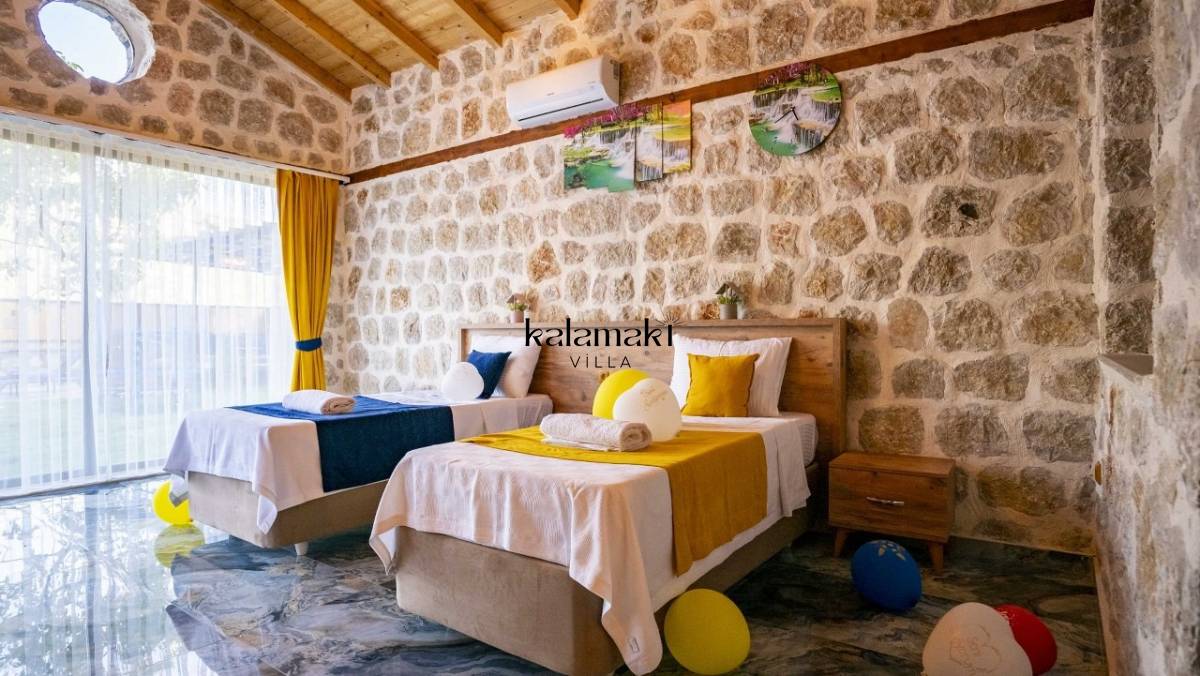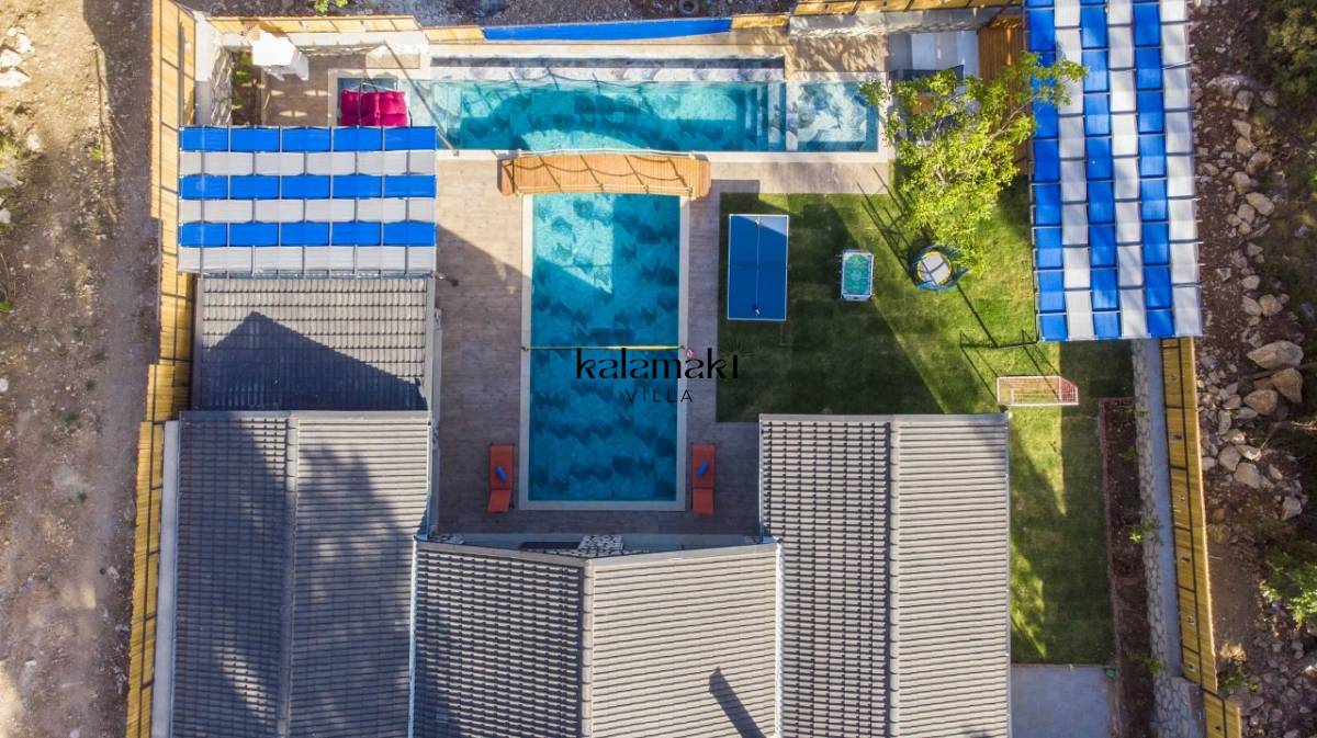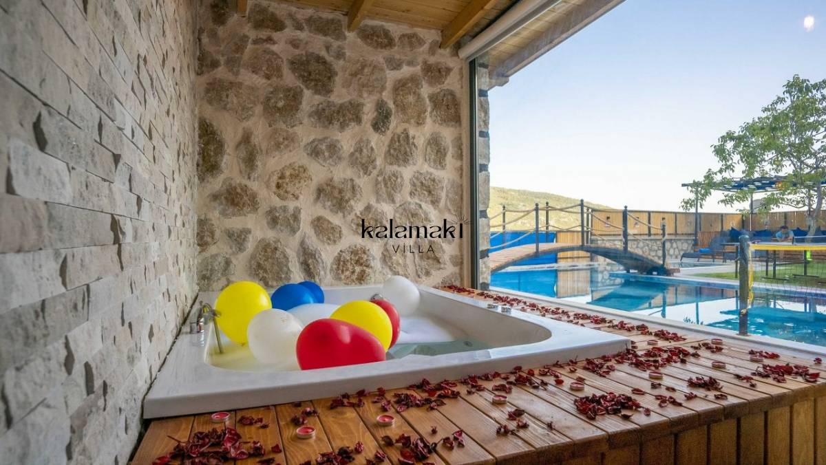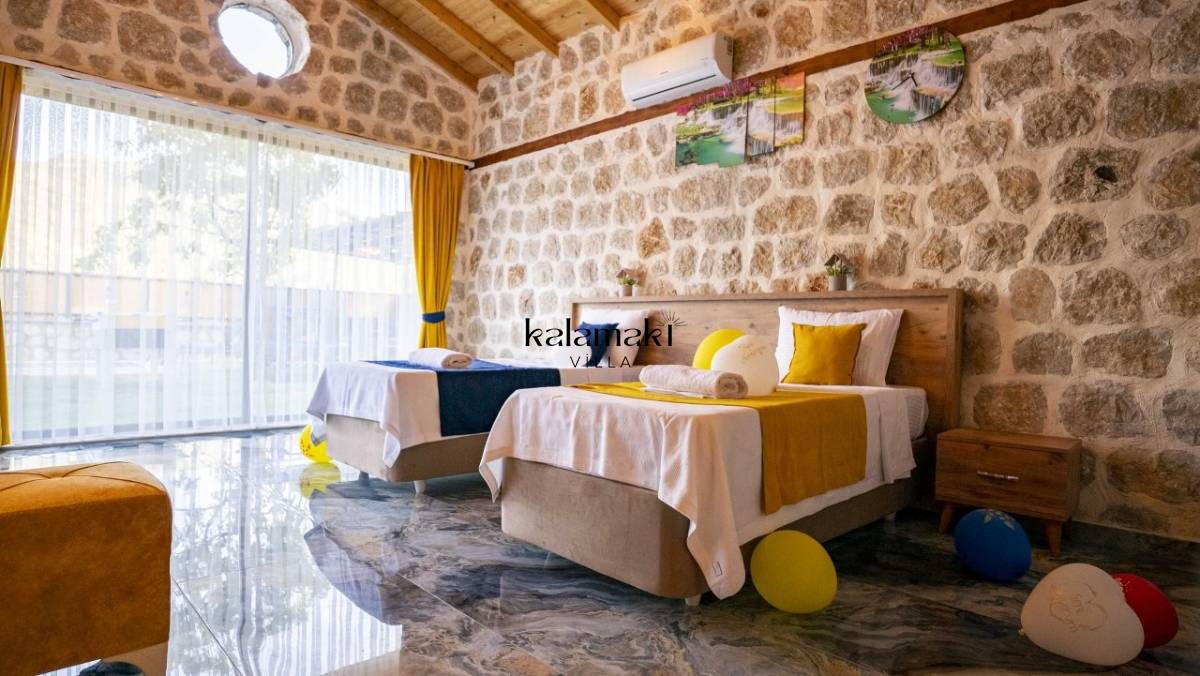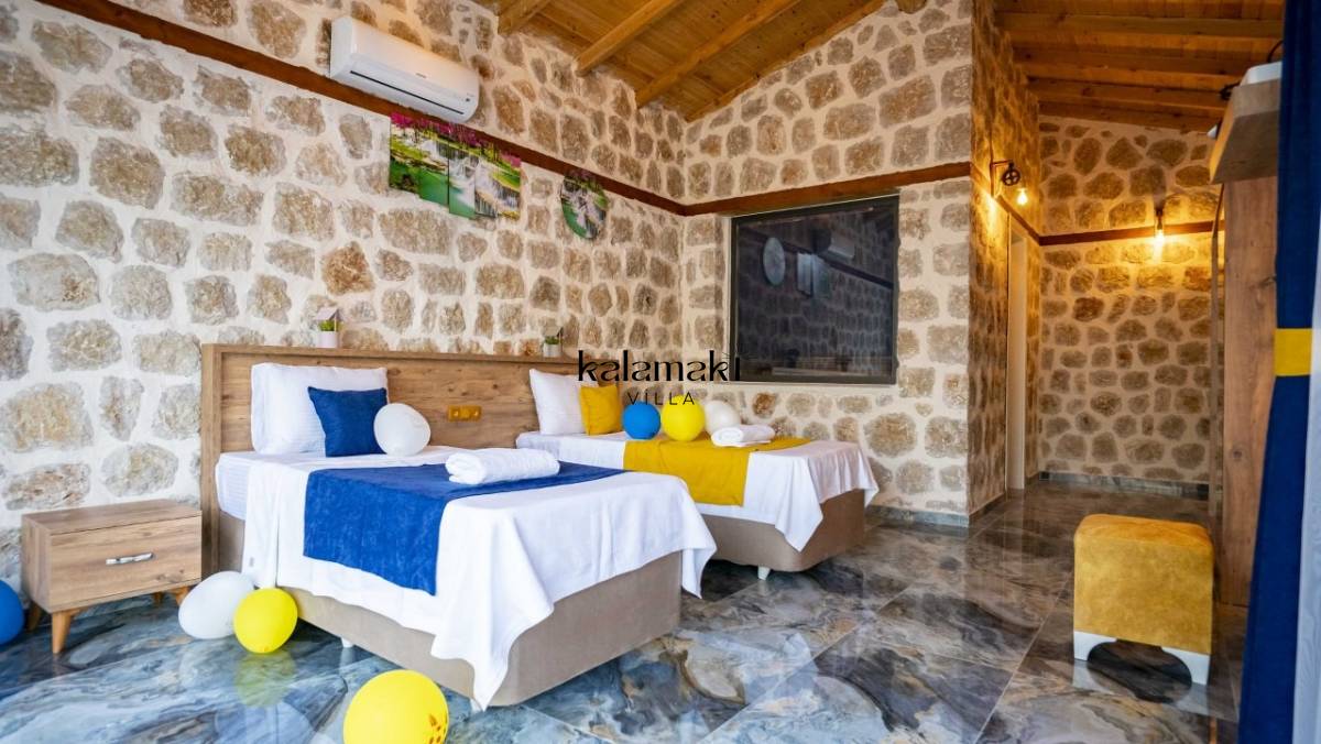 Kalkan İslamlar’ da bulunan taş mimarili ile özenle dekore edilmiş 2 yatak odalı, yeşillikler içinde özel muhafazakar havuzlu, masa tenisi, langırt, çocuklar için düşünülmüş oyun parkı, salıncak, mini futbol kalesi, küçük basket potası, oturma köşkü, tranbolin, masa tenisi, langırt, minyatür kale, havuzda voleybol filesi, tavla, satranç, domino, sauna ve oda içerisinde jakuzi bulunan villamız bölgenin en modern villalarından olup muhafazakar balayı çiftleri için uygun, lüks bir kiralık balayı villasıdır. Villa Big Boss geniş bir bahçe içerisinde yapılmış olup etrafında herhangi bir yerleşim olmadığı için tam korunaklı bir havuza sahiptir.