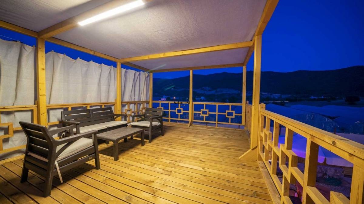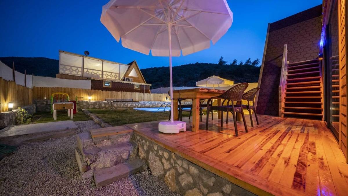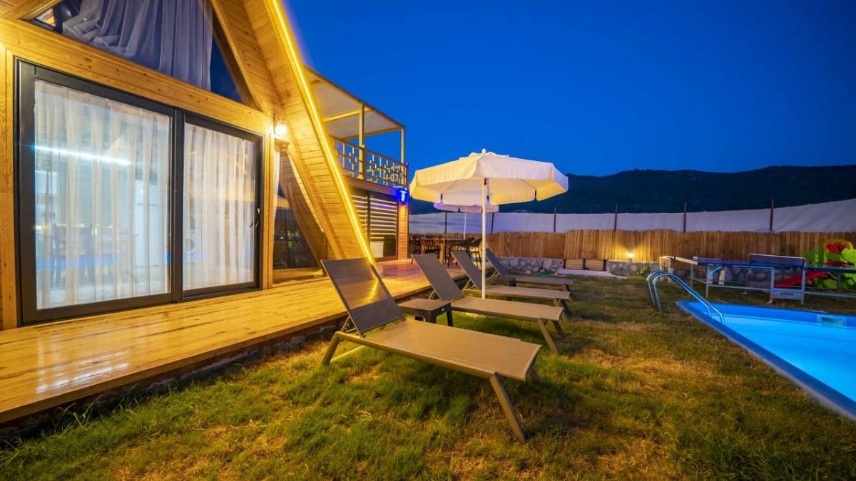 Antalya'nın eşsiz tatil beldelerinden birisi olan Kalkan Yeşilköy mevkiinde bulunan villamız 2 yatak odalı olup 4 kişilik konaklamaya müsait villalarımızdan bir tanesidir. Balayı çiftleri ve çekirdek ailelerin tercih edebileceği villalarımızdan bir tanesidir. Villamız ikiz villadır hemen önünde aynı özelliklerde Villa Poyraz bulunmaktadır, geniş ailelerde tercih edebilir.