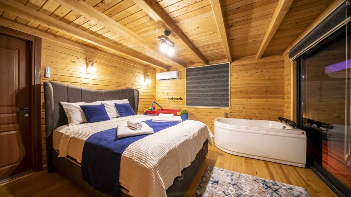 1. Yatak Odası; 1 adet çift kişilik yatak, jakuzi, elbise dolabı, makyaj masası, komodin, klima ve banyo-wc bulunmaktadır.