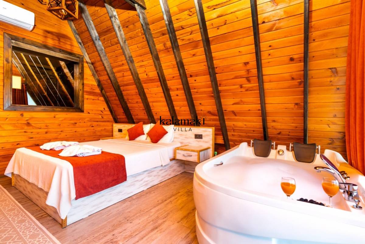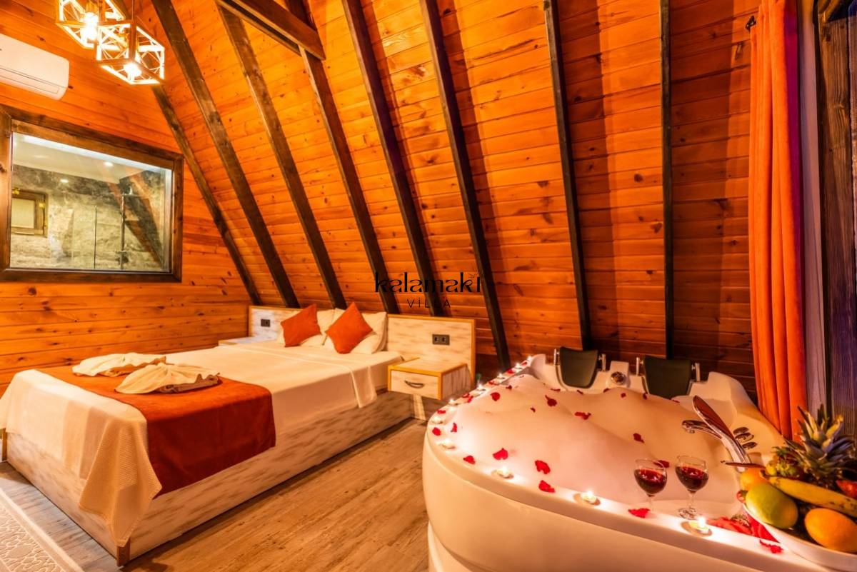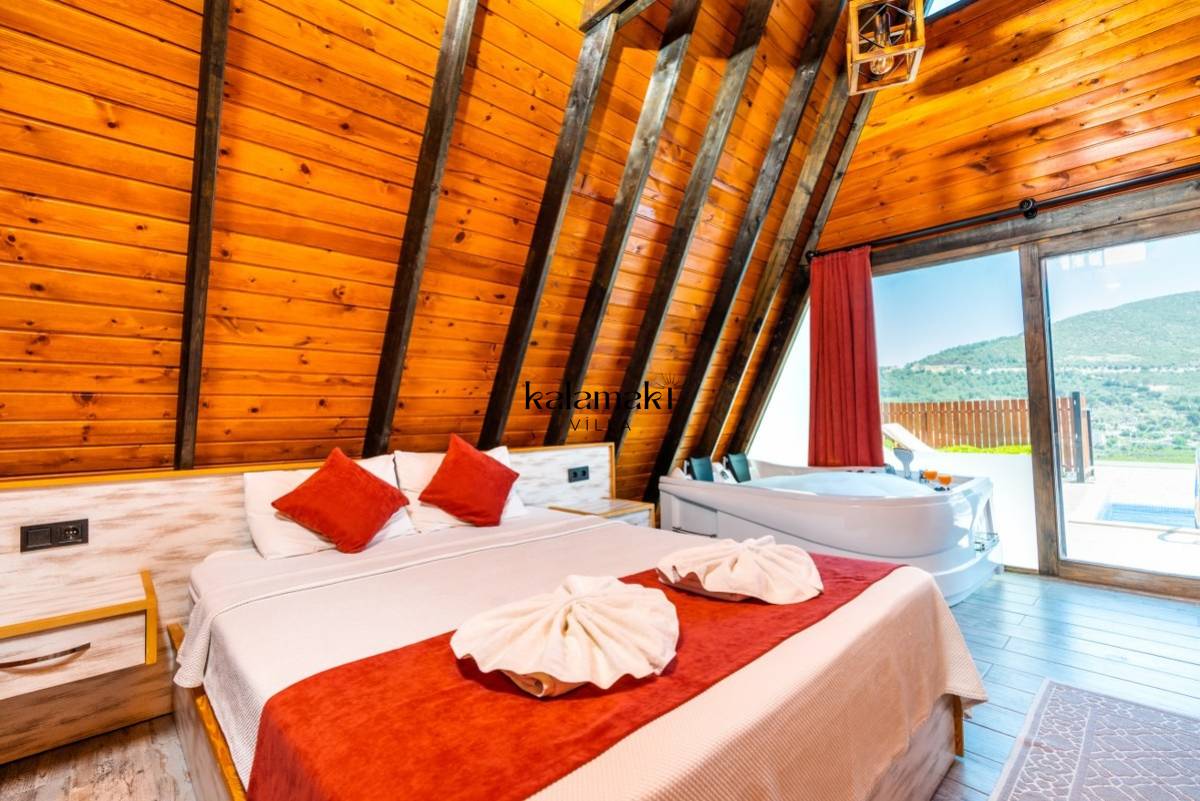 Antalya/Kalkan'ın Yeşilköy bölgesinde yer alan 2 kişi konaklama kapsitesine sahip olan tatil villamızdır. Korunaklı havuz ve bahçe alanına sahip olan villamızın geniş bahçe alanında rahatça güneşlenip keyifli vakitler geçirebilirsiniz. Muhteşem doğa manzarasına sahip olan villamız ahşap detayları ile şık dizayna sahiptir. Yatak odasında çift kişilik jakuzisi bulunan villamız balayı çiftlerimiz için özenle dizayn edilmiştir. Ayrıca villamızda masa tenisi de yer almaktadır.