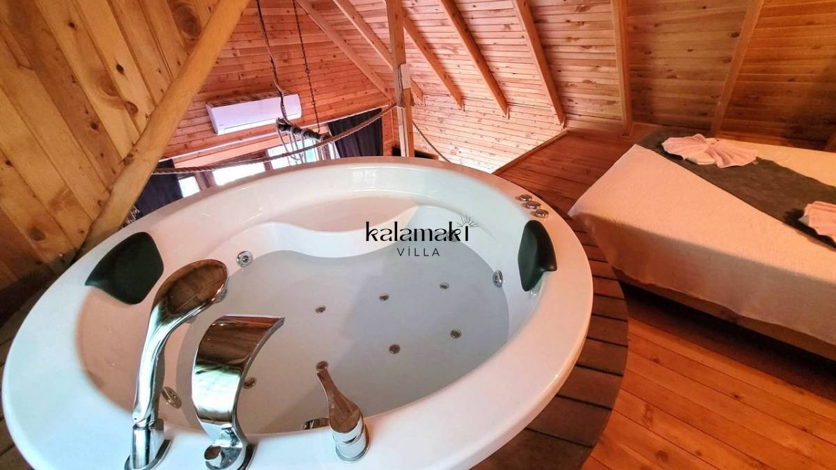 Villa Doğal, balayı çiftleri için özel olarak dizayn edilmiştir. Villamızın havuz etrafı korunaklı olup dışarıdan görünmediği için muhafazakar çiftlerin de gönül rahatlığıyla tercih edebileceği, ahşap tasarımlı bir villadır.
