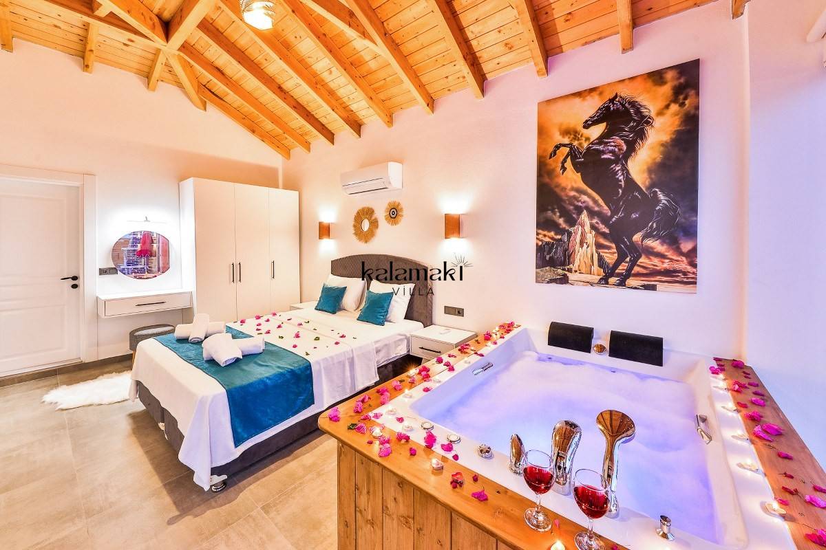 1. Yatak Odası: 1 adet Çift kişilik yatak, Gardrop, Klima, Komodin, Makyaj Masası, TV, Jakuzi ve Ebeveyn Banyosu bulunmaktadır.