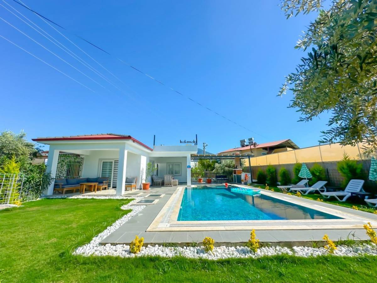 Merkezi konumu sayesinde tercihlerin başında gelen villa, oldukça ferah ve geniş bahçe alanında kapasiteye uygun şezlong takımı, oturma grubu, salıncak ve barbekü alanına sahiptir. Havuz terasına açılan zevkle döşenmiş konforlu oturma odası ve tam donanımlı mutfağı, bir yatak odasında çift kişilik yatak ebeveyn banyosu ve jakuzi; ikinci yatak odasında da iki tek kişilik yatak bulunmaktadır.
