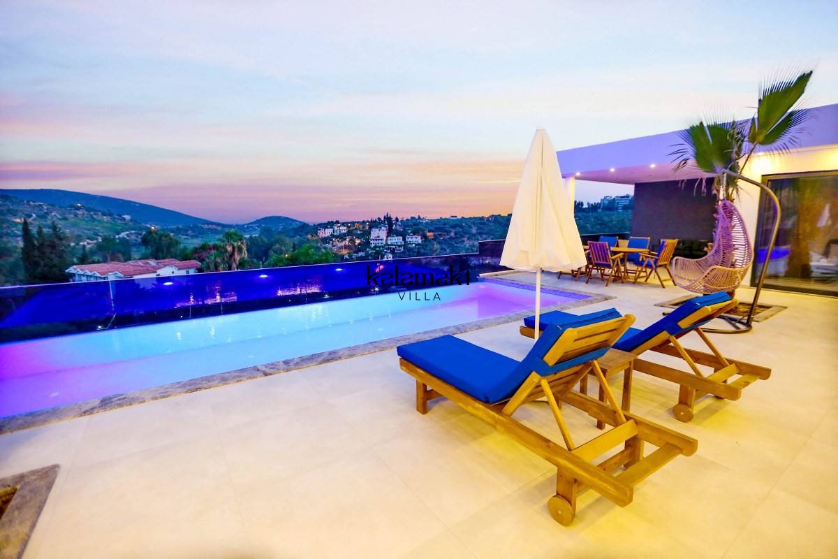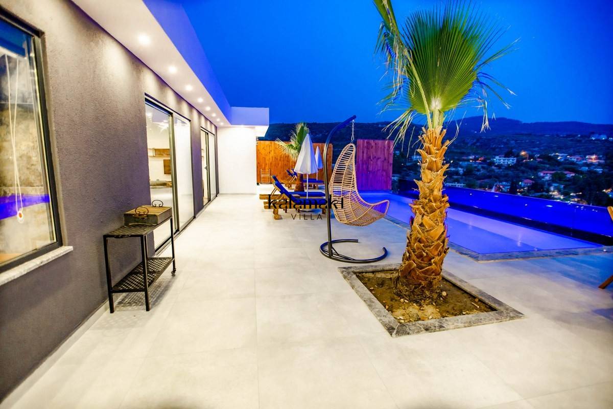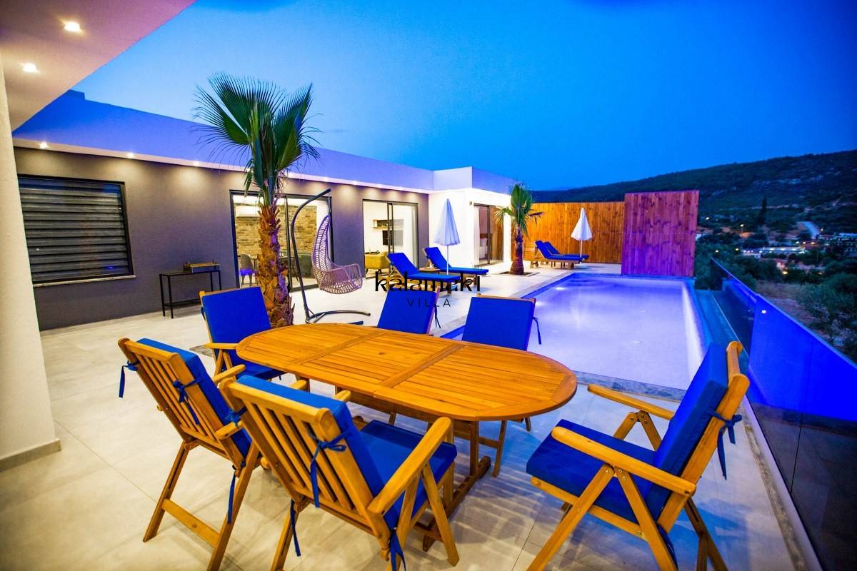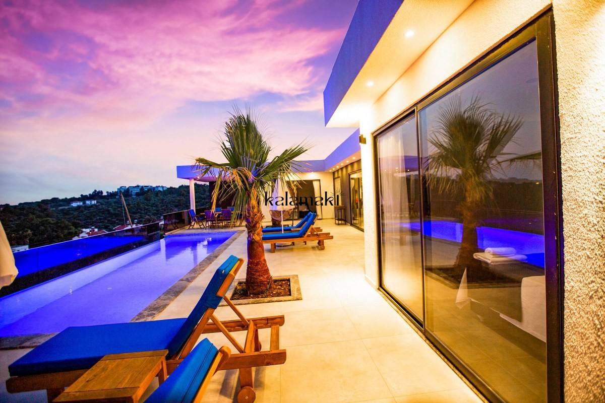Kalkan Patara Bölgesi'nde kiralık villalarımızdandır. Kalkan Merkez'e, 15 km araç mesafesindedir. Villamız 2 yatak odalı, 4 kişilik ve her odada ebeveyn banyosu bulunmaktadır. Amerikan Mutfak konsept ve dizayn edilmiş mobilyalar mevcuttur. Özel havuz ve bahçeli teras mevcuttur. Çift kişilik yatak odamız da jakuzi bulunmaktadır. Villamızda havuz terası ve özel havuzu mevcuttur.