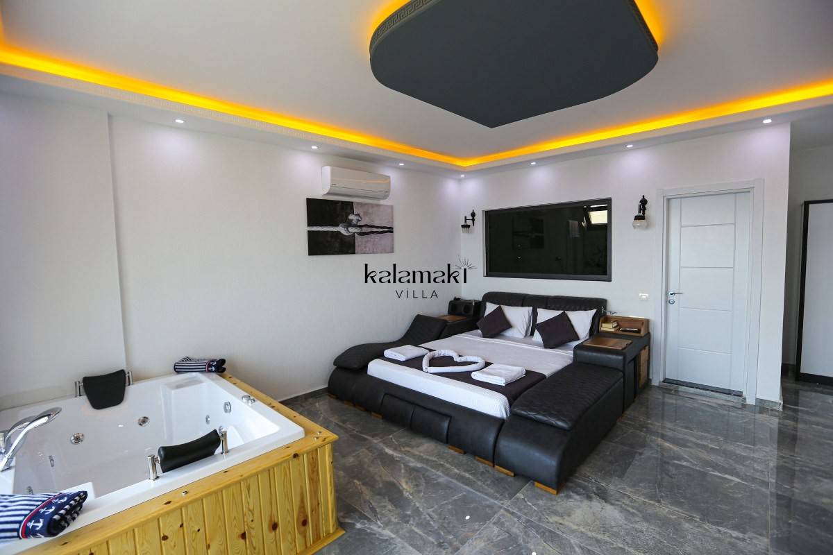 1. Yatak Odası: 1 adet çift kişilik yatak, Klima, Tuvalet ve banyo, Jakuzi, TV,