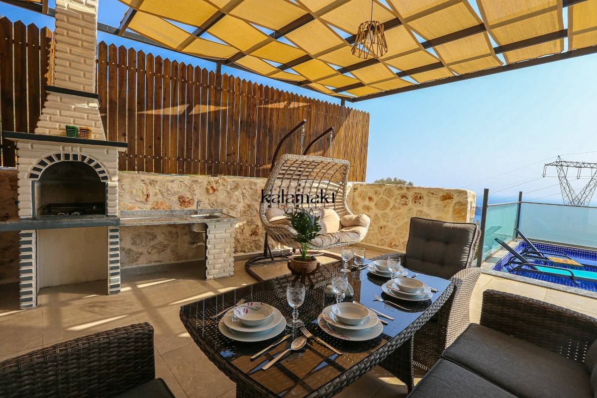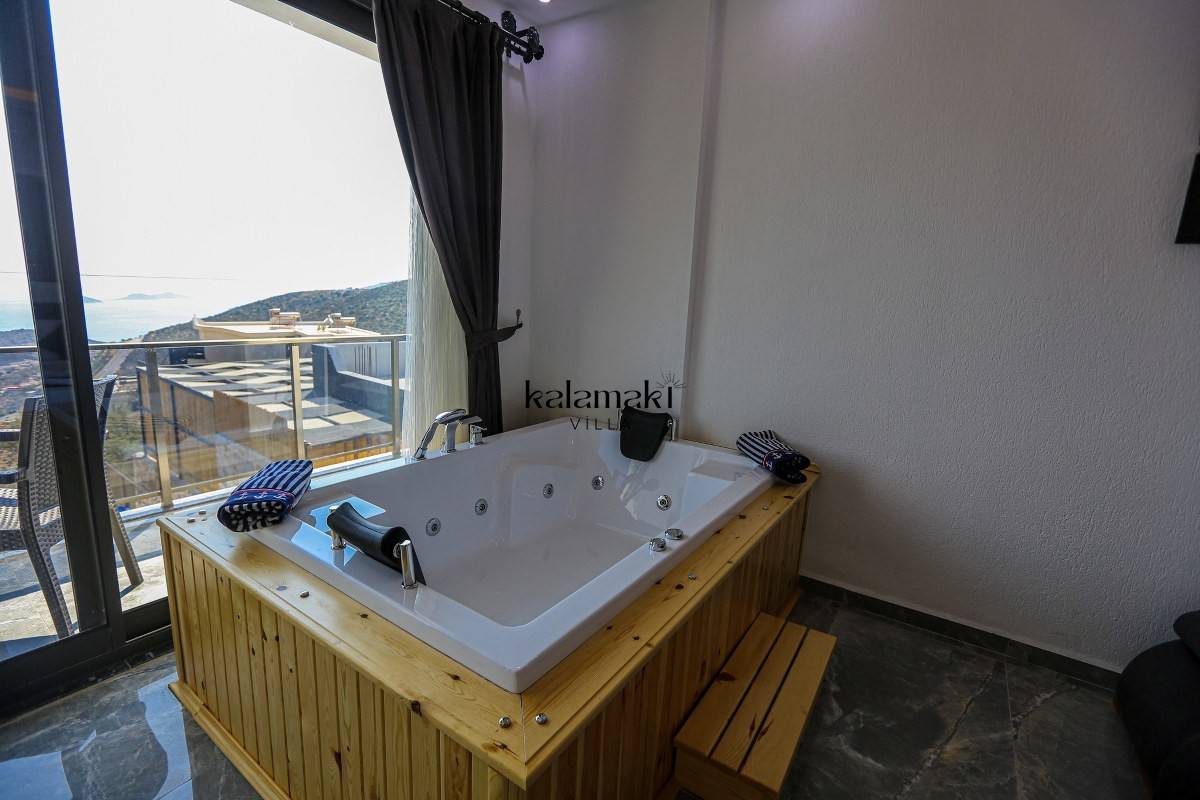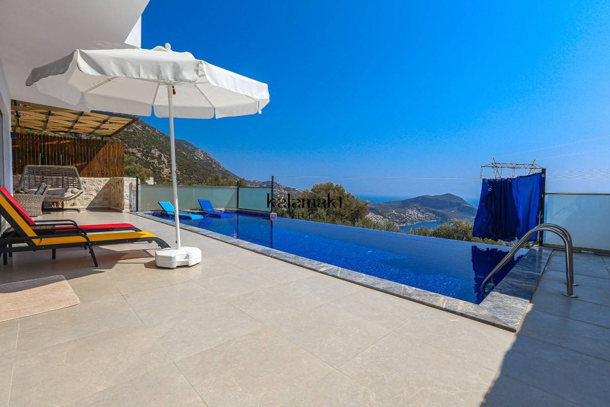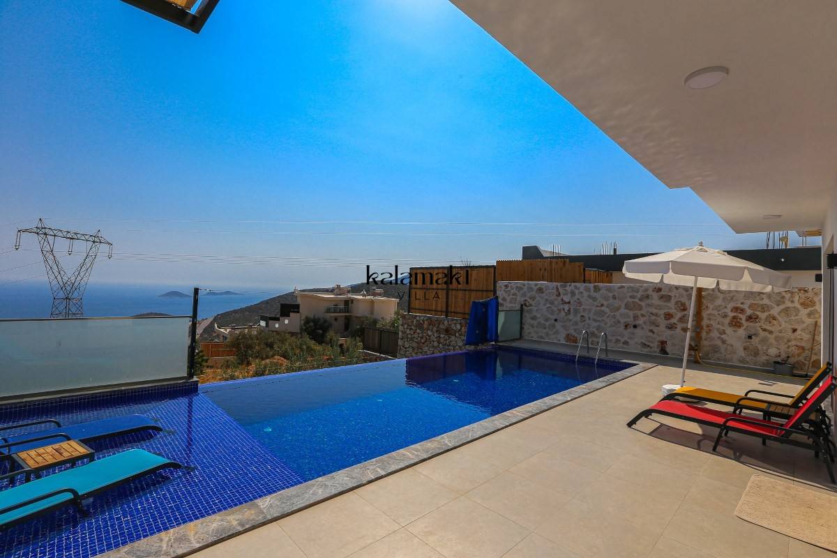 Kalkan Akbel'de eşsiz deniz ve doğa manzarasına sahip lüks kiralık villalarımız arasında yer almaktadır. Şık ve konforlu bir şekilde dizayn edilen yazlık villamızda 2 adet yatak odası bulunmakta olup, 4 kişiye kadar konaklama imkanı sağlamaktadır. Yatak odasının bir tanesinin içerisinde tüm yılın vermiş olduğu yorgunluğu atabileceğiniz jakuzi yer almaktadır. En ince ayrıntıya kadar düşünülerek hazırlanmış olan kiralık villamızın havuz ve havuz ve terası korunaklı hale getirilmiştir. Muhafazakar ailelerimiz ve balayı çiftlerimiz gönül rahatlığı ile tercih edebilirler.