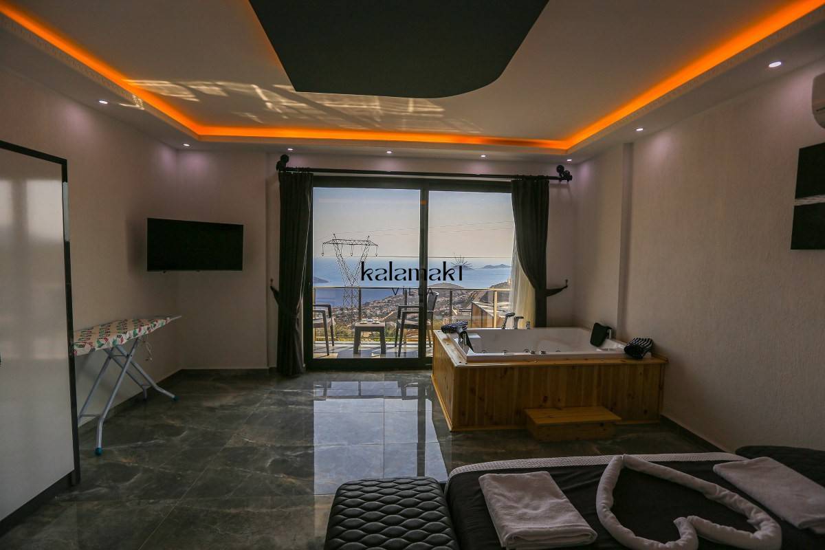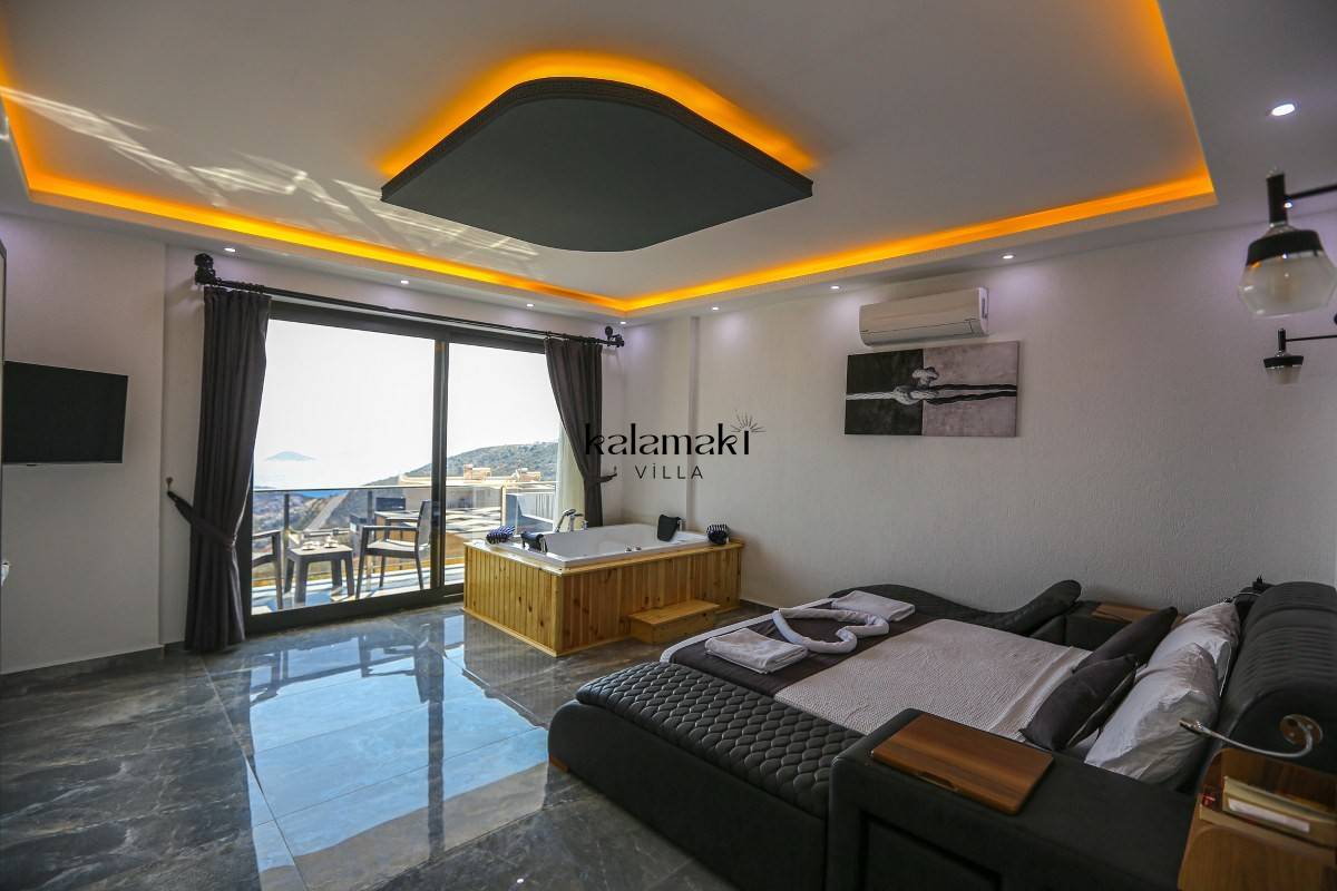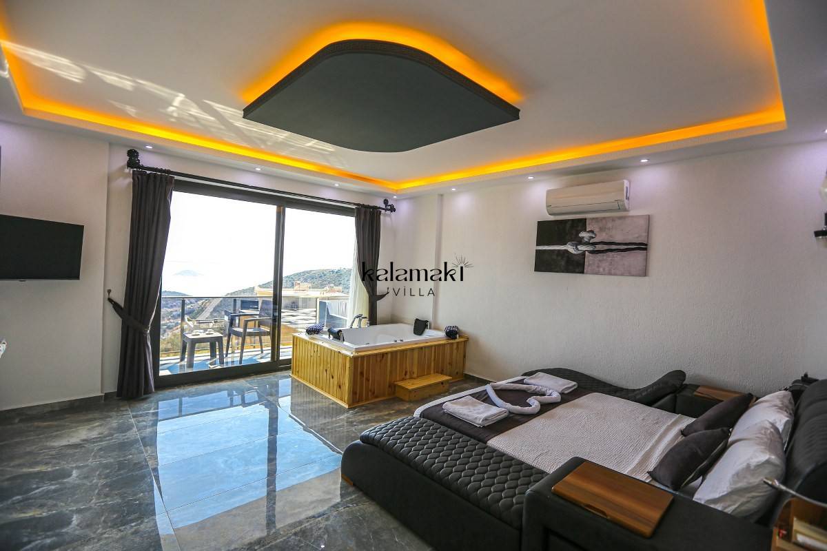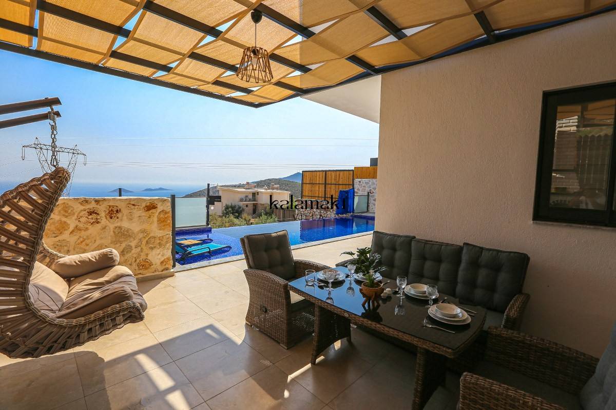 Kalkan Akbel'de eşsiz deniz ve doğa manzarasına sahip lüks kiralık villalarımız arasında yer almaktadır. Şık ve konforlu bir şekilde dizayn edilen yazlık villamızda 2 adet yatak odası bulunmakta olup, 4 kişiye kadar konaklama imkanı sağlamaktadır. Yatak odasının bir tanesinin içerisinde tüm yılın vermiş olduğu yorgunluğu atabileceğiniz jakuzi yer almaktadır. En ince ayrıntıya kadar düşünülerek hazırlanmış olan kiralık villamızın havuz ve havuz ve terası korunaklı hale getirilmiştir. Muhafazakar ailelerimiz ve balayı çiftlerimiz gönül rahatlığı ile tercih edebilirler.