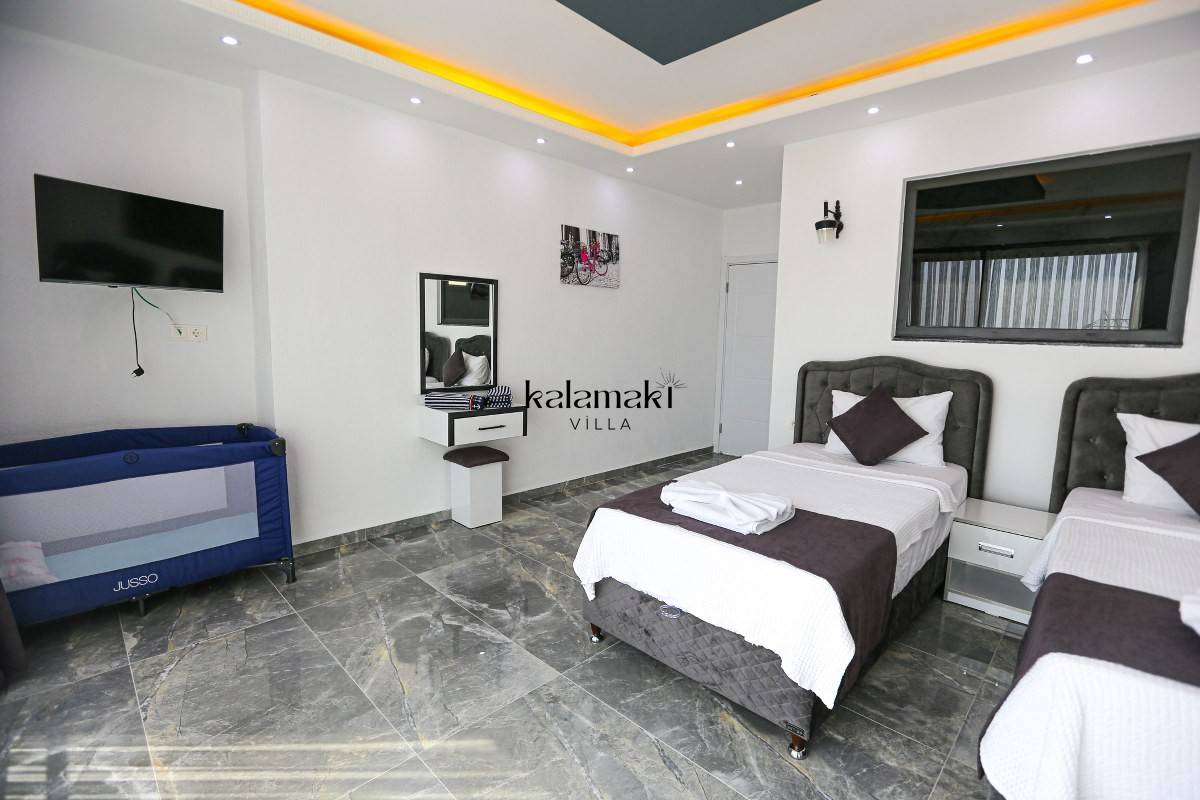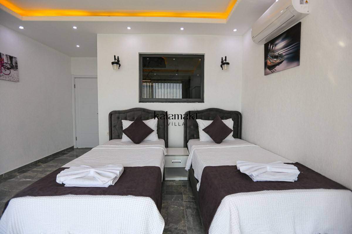 2. Yatak Odası: 2 adet tek kişilik yatak, Klima, Tuvalet ve banyo, TV,