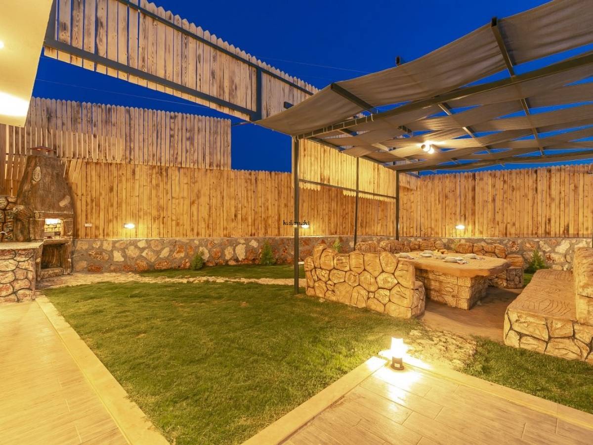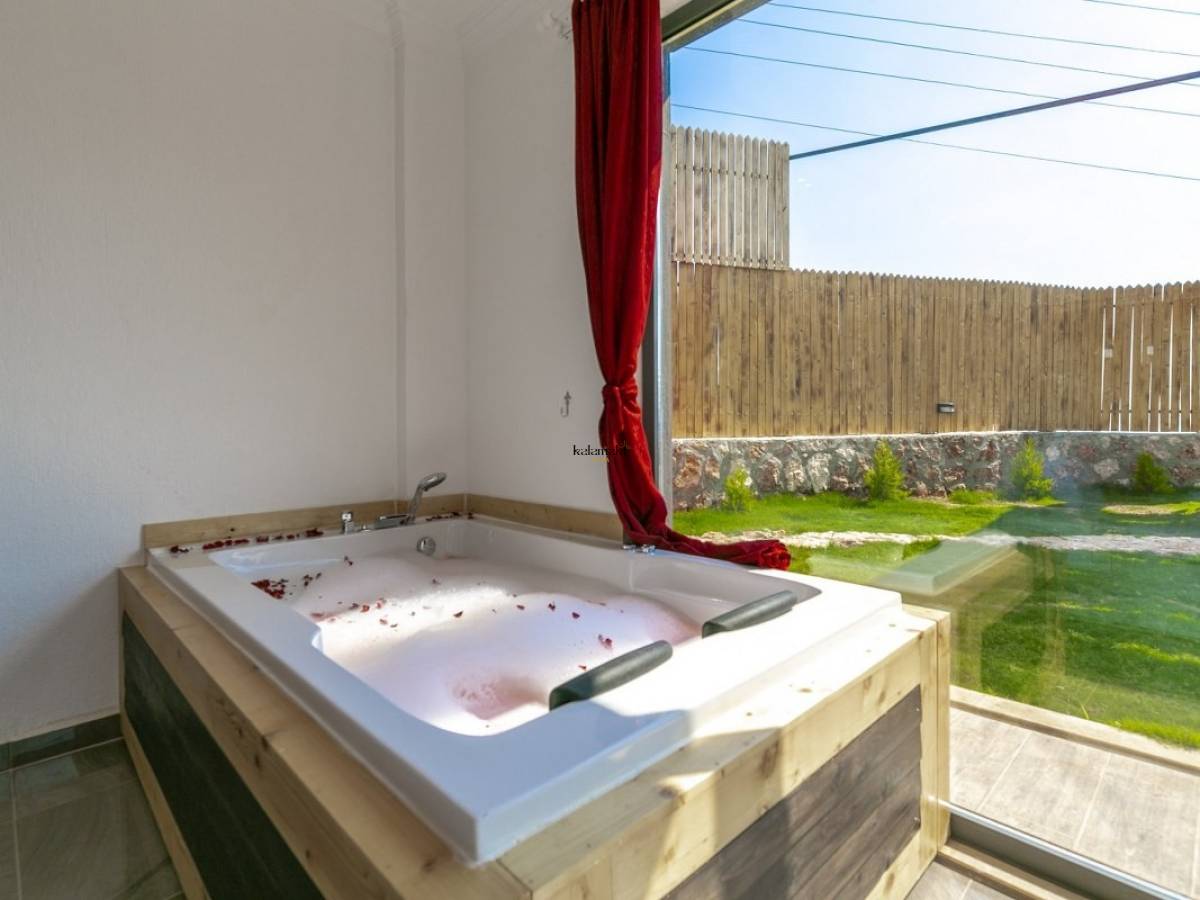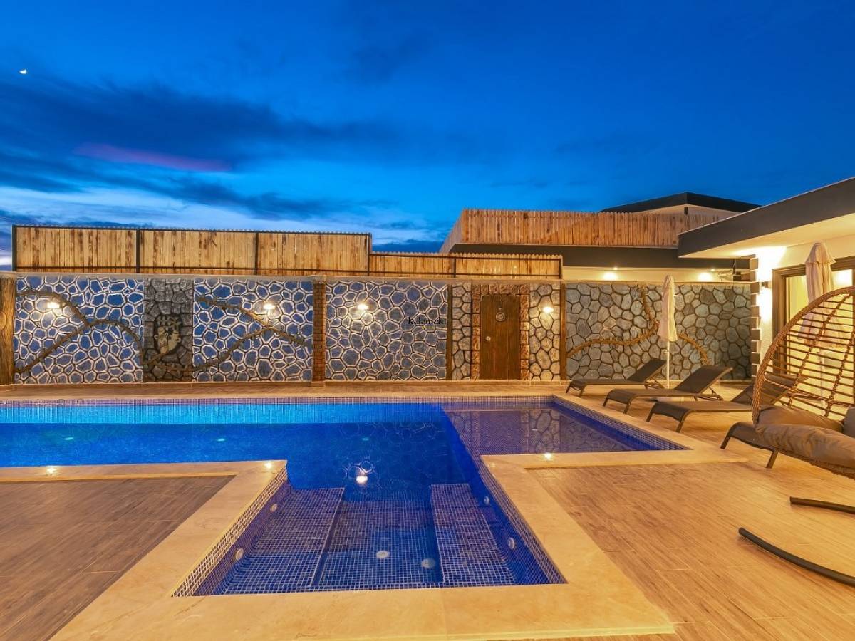 Korunaklı havuz alanına sahip olan villanın, havuz terasında kapasiteye uygun şezlong takımı, taş oturma grubu ve barbekü alanı bulunan villanın; yine havuz terasına açılan oturma odası ve tam donanımlı açık mutfağı, bir yatak odasında çift kişilik yatak, ebeveyn banyosu ve diğer yatak odasında da iki tek kişilik yatak ve ebeveyn banyosu bulunmaktadır. Ayrıca jakuzi bulunan villa, dört mevsim tatil planlarınıza ev sahipliği yapmaya adaydır. İhtiyaçlarınız gözetilerek dizayn edilmiş detaylara sahip ve merkeze kolay ulaşım sağlayan konumuyla misafirlerimizin ilk tercihleri arasında yer almaktadır.