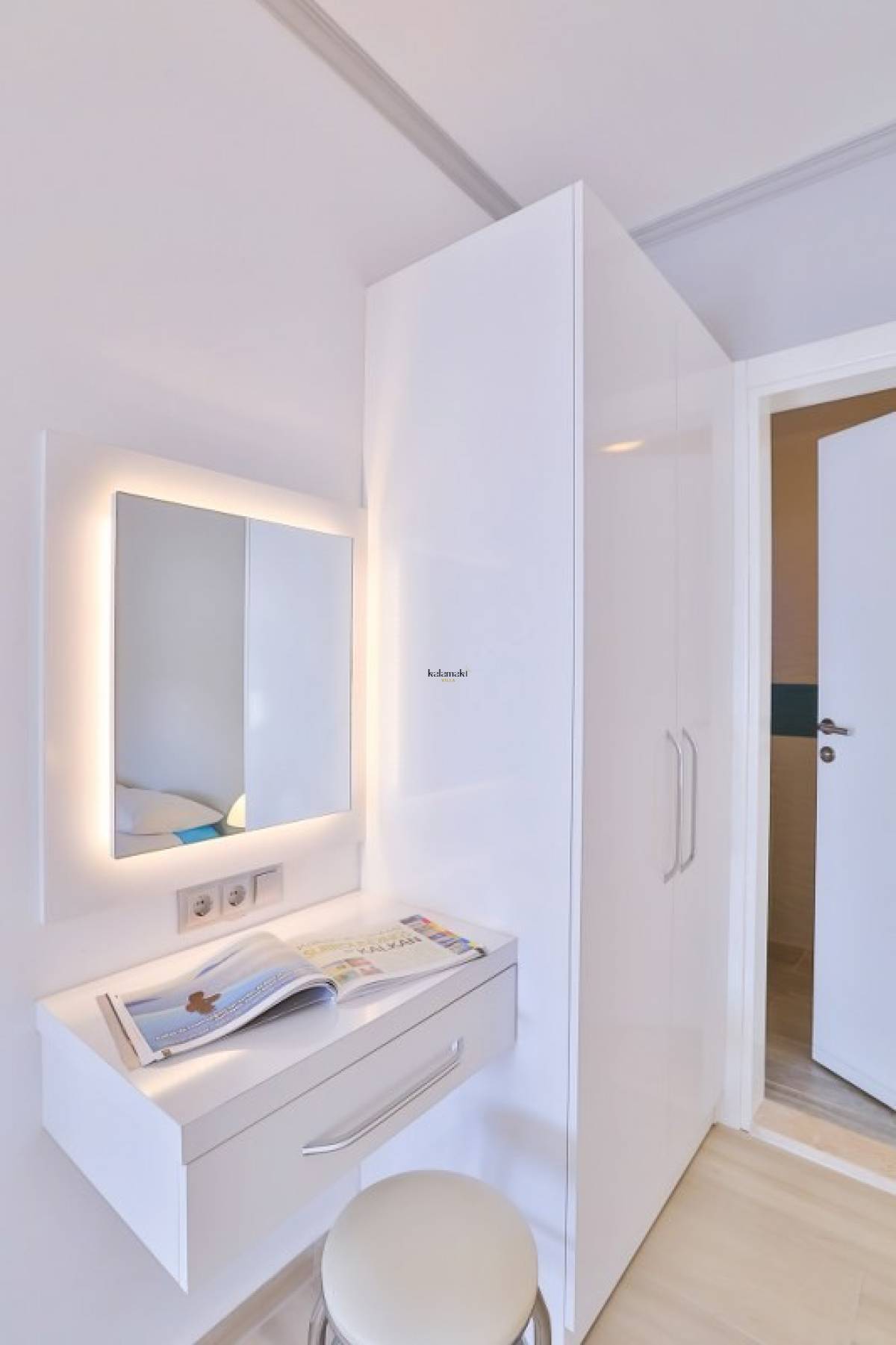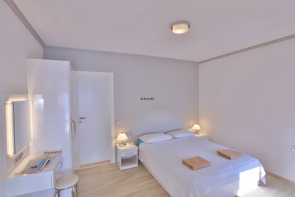 2. Yatak Odası: 1 adet çift kişilik yatak, komodin, elbise dolabı, makyaj masası, klima, banyo, tuvalet bulunmaktadır