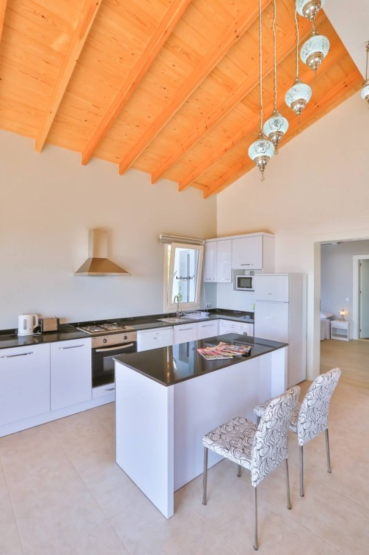 Modern Amerikan mutfak, buzdolabı, bulaşık makinesi, çamaşır makinesi, fırın, mikrodalga fırın, elektrikli su ısıtıcı 4’lü Ocak, yemek takımı, mutfak araç gereçleri bulunmaktadır.