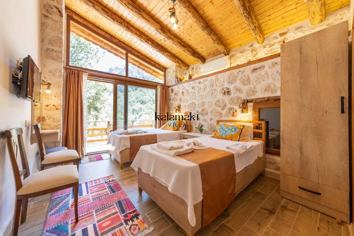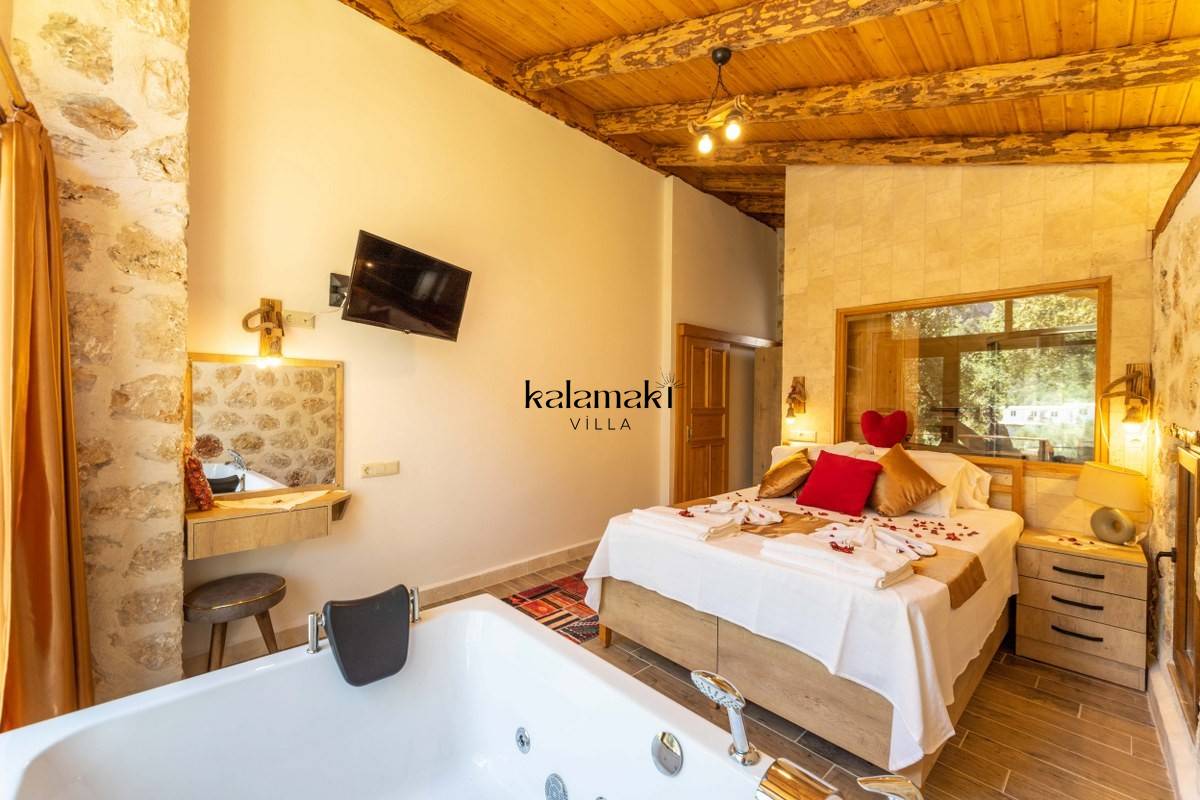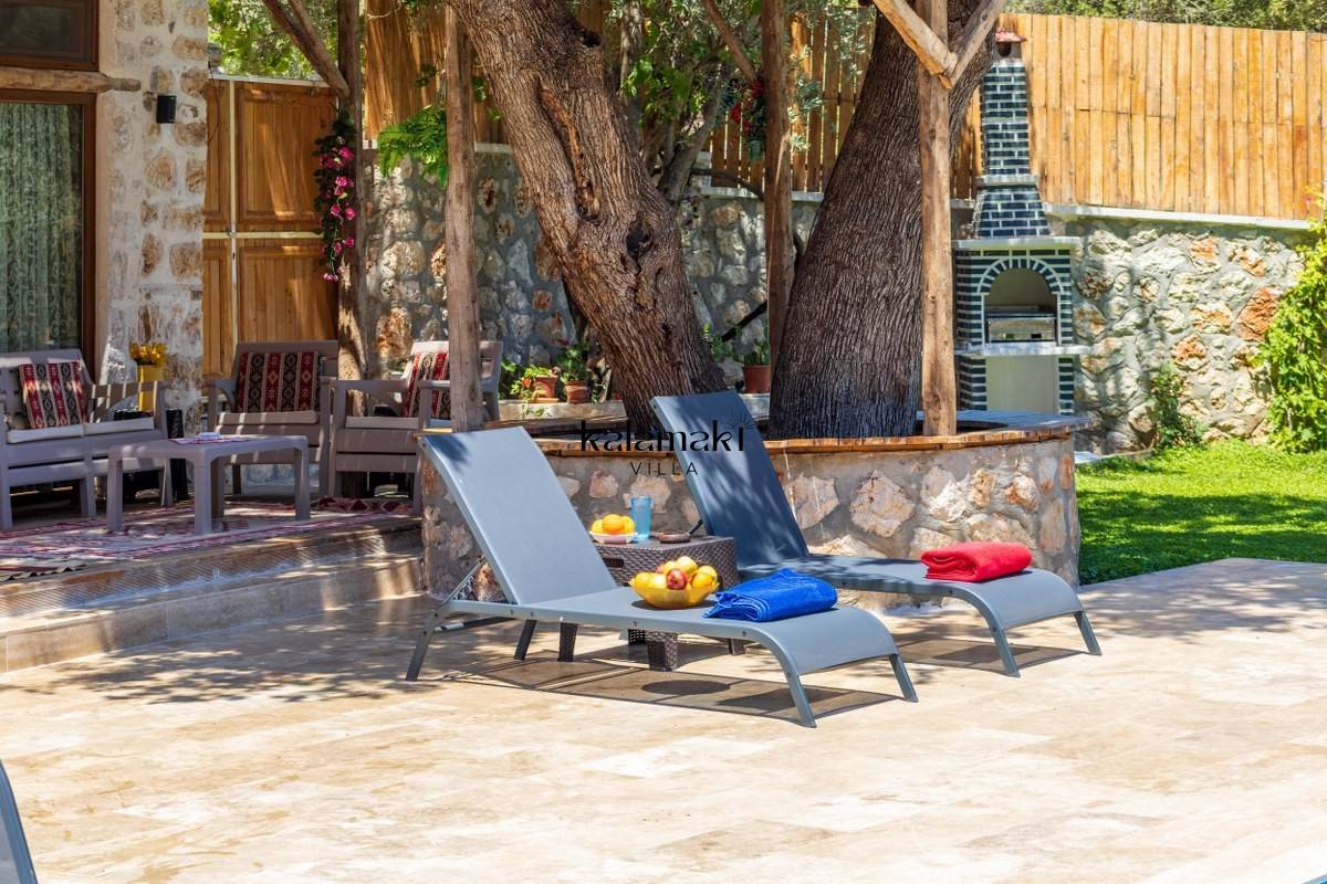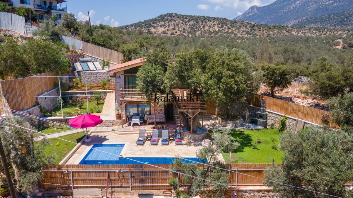 Kalkan/Ulugöl mevkiinde doğa içersinde şehrin gürültüsünden uzakta konumlandırılan,taş mimarisi,şık tasarımı ve konforlu iç dizaynıyla muhafazakar ailelerin rahatlıkla tercih edebileceği seçenekler arasındadır. 2 yatak odalı 4 kişilik kapasiteye sahiptir. 1. Yatak odasında çift kişilik yatak, jakuzi ve banyo ve tuvalet yer almaktadır. 2. Yatak odasında ise 2 ayrı tek kişilik yatak ve tuvalet banyo yer almaktadır. 2 Yatak odasınında aynı yere çıkan ahşap yapıya sahip balkonu yer alması ile çayınızı ve kahvenizi yudumlayacak çok güzel agaç arasında şark köşesine sahiptir. Villamızda misafirlerimizin ihtiyaçlarının karşılanması için tüm araç-gereçler düşünülmüştür.