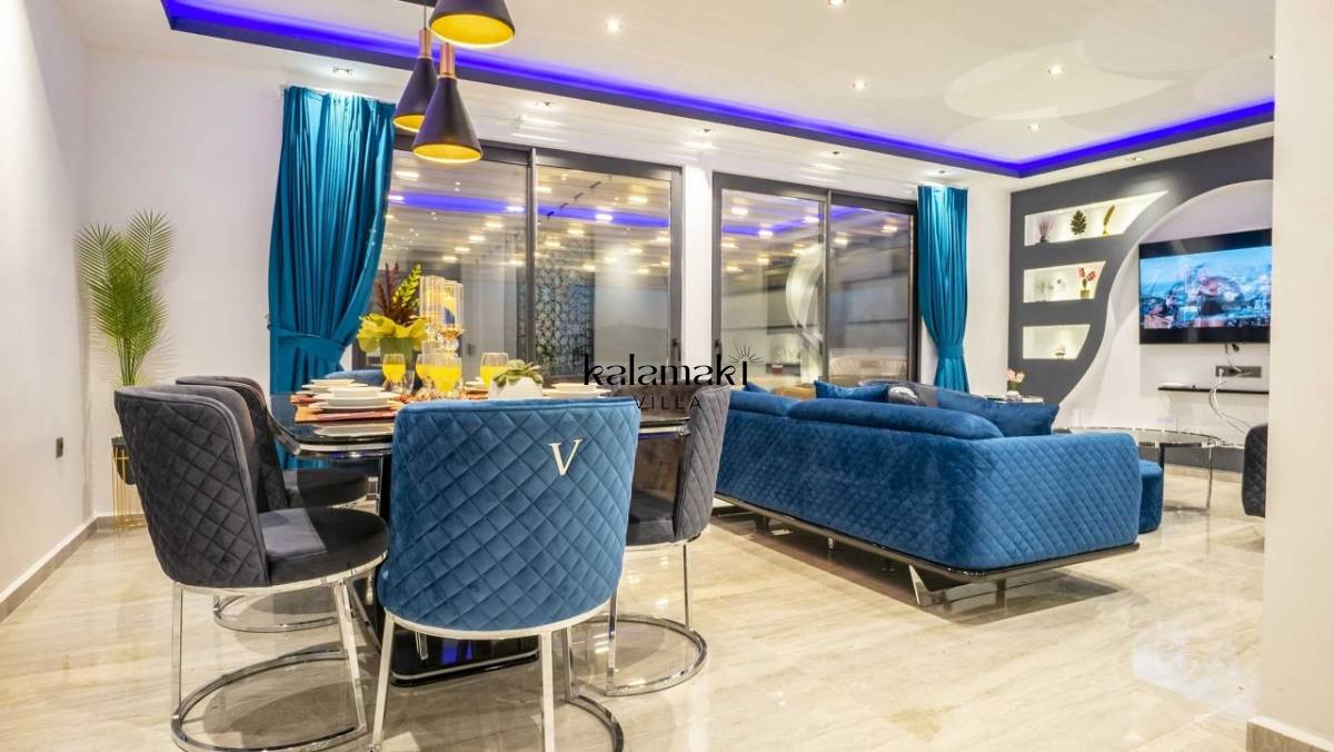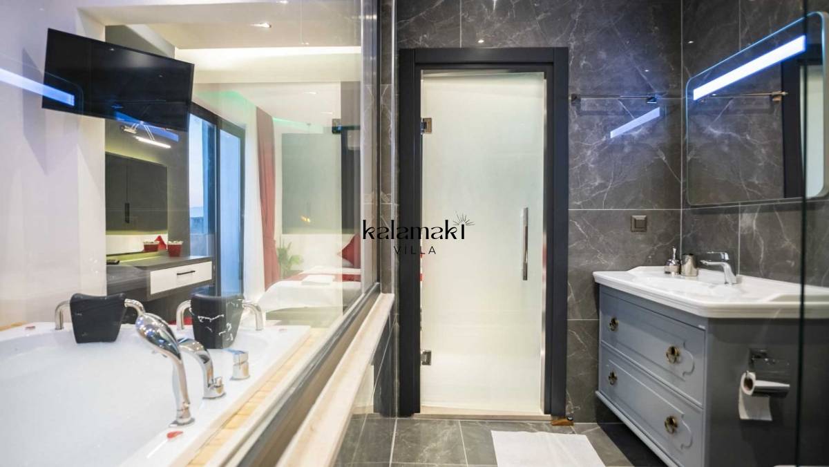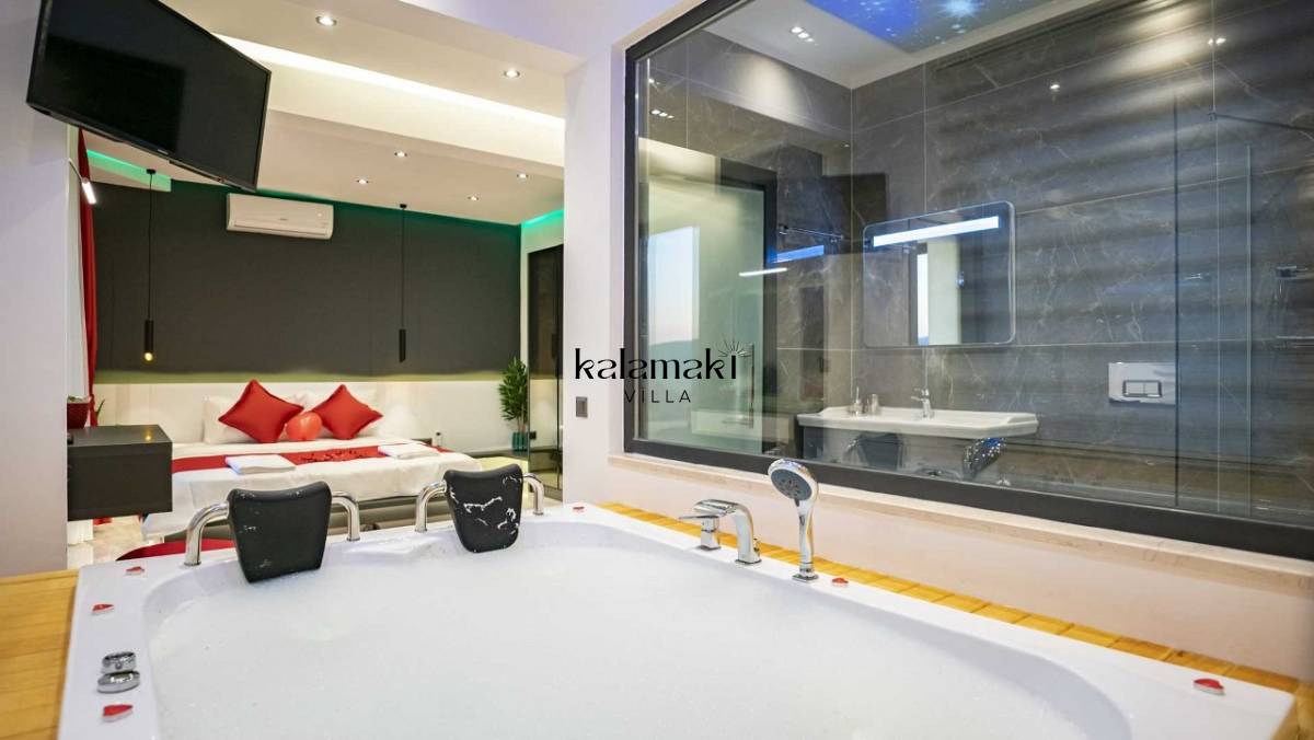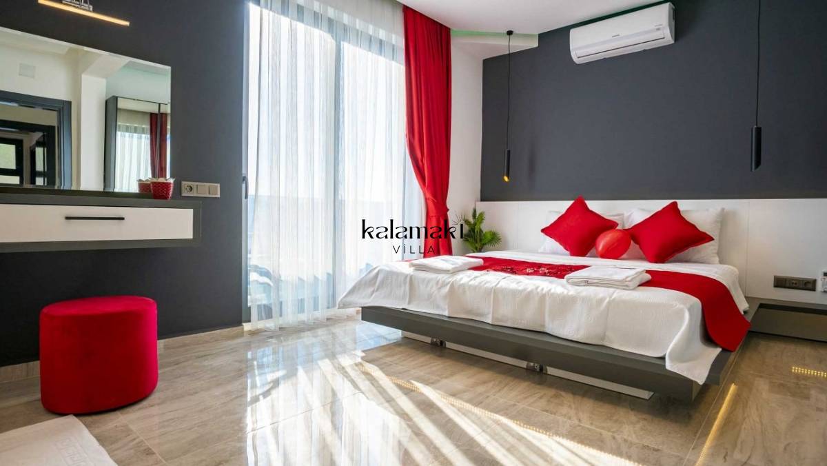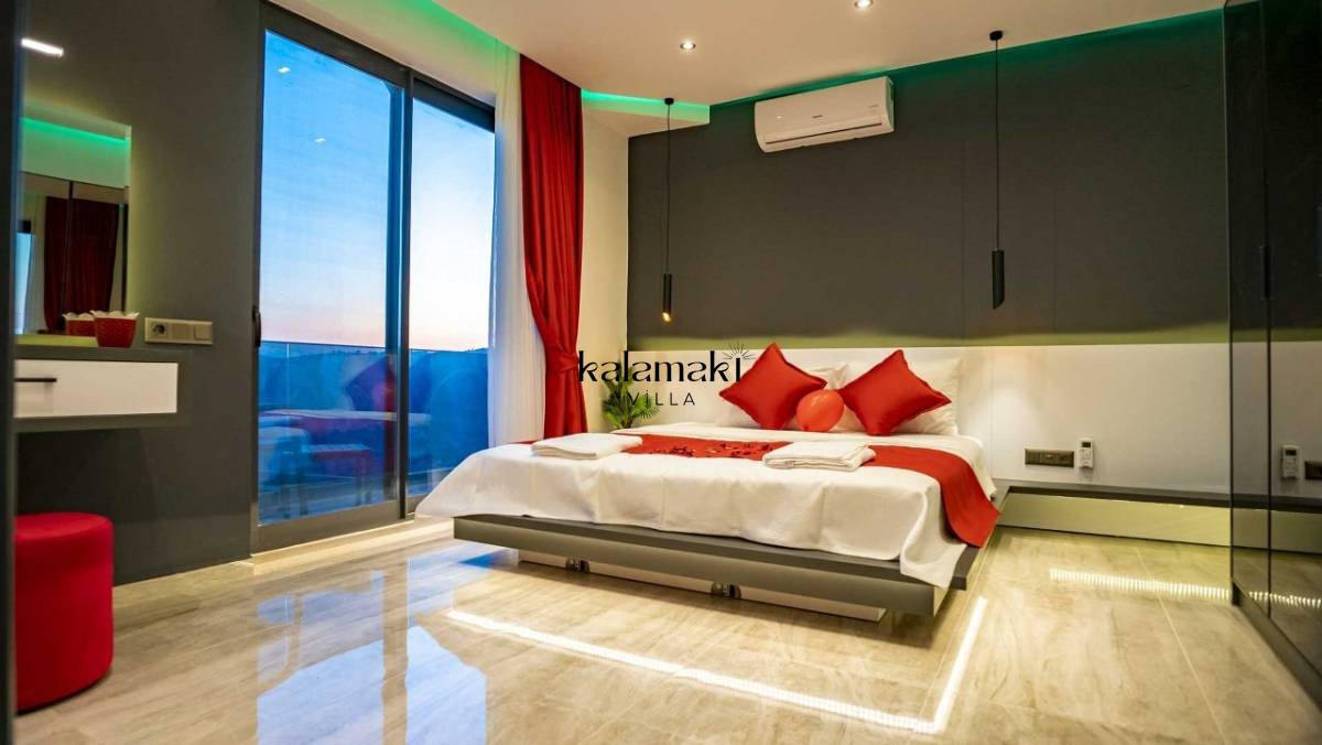 Villamızda üç yatak odası ve dört banyo bulunmaktadır. Birinci yatak odasında çift kişilik yatak, banyo, jakuzi ve klima bulunmaktadır. Diğer iki yatak odasında ise çift kişilik yatak, klima ve banyo bulunmaktadır. Salon içerisinde mutfak, klima, oturma grubu, banyo ve televizyon mevcuttur.