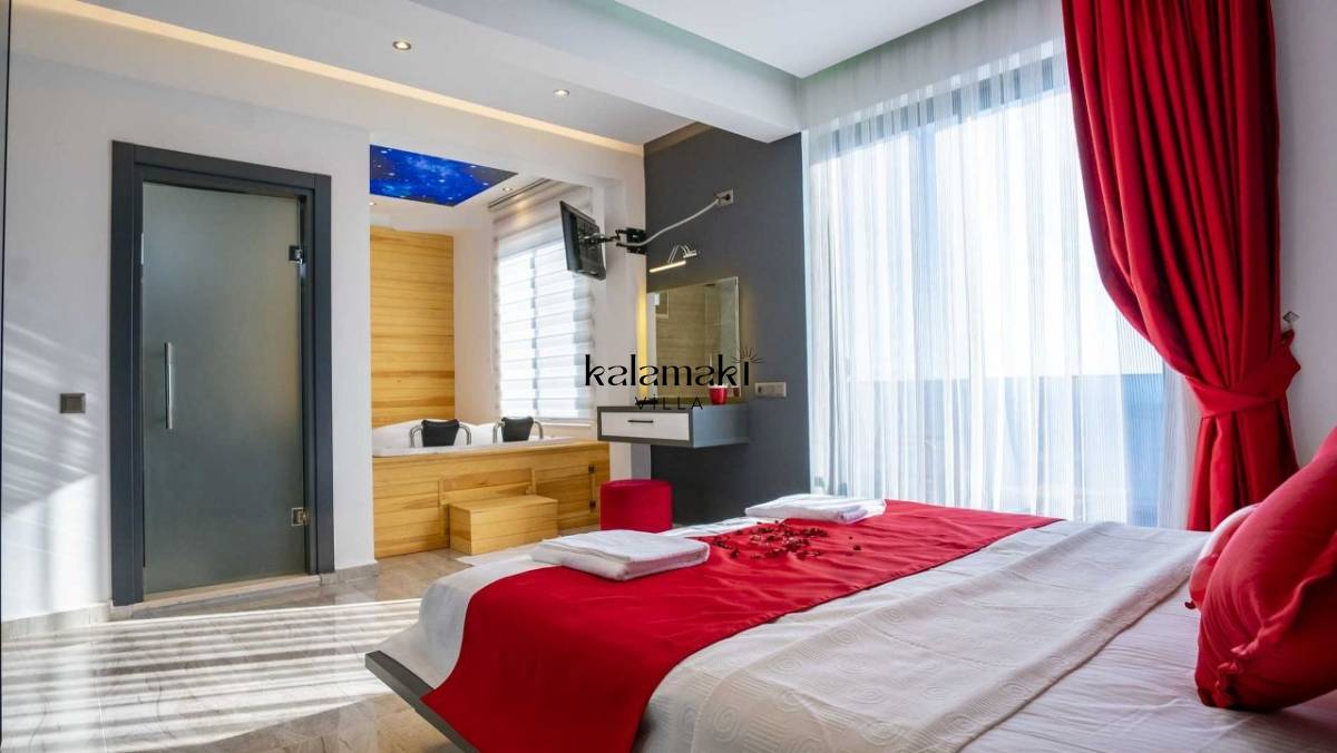 1. yatak odası : 1 çift kişilik yatak, Klima, WC + Duş + Jakuzi