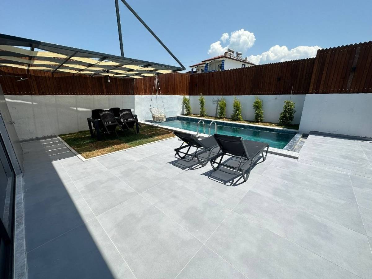 Villamız Kaş ilçesi,Kalkan beldesinin Kınık bölgesindedir. Villamız size huzurlu bir tatil yapma fırsatını sunmaktadır. Konumu itibari ile Kaputaj Plajı, Patara Plajı,Patara antik kenti,Xanthos antik kenti,Saklıkent kanyonu,Gizli kent şelalesi,Patara kum tepeleri gibi turistik yerlere oldukça yakındır.Ayrıca kas merkez 30 km,Antalya merkez 195 km,Fethiye merkez 60 km’dir.Kalkan belde merkezine yaklaşık 10 dk sürüş mesafesindedir.200 m uzaklıkta marketler süper marketler,400 m uzakta manav,cafe vs aradığınız hersey vardır.Villamız 2 kişilik konaklama kapasitesine sahiptir.Tek çocuğu olan bireyler için koltuğumuz açılmaktadır.Modern bina mimarisine sahip villamızda güneşin keyfini çıkarabileceğiniz 3m x 7m (derinlik: 1.55m) boyutlarında korunaklı havuz, lüks ve konforlu mobilyalar, bahçe oturma takımı, barbekü, bahçe salıncağı, şezlonglar ve yatak odasında tek kişilik jakuzi bulunmaktadır. Villamız özel bir deneyim yaşamak isteyen balayı çiftleri için uygun bir seçenektir. Modern mimari,amerikan mutfakta yemek takımı, buzdolabı, çamaşır makinası, mikrodalga fırın ,4lü ocak, tost makinası, kettle , çatal bıçak takımı, tencere tava takımı, bulaşık makinası bulunmaktadır.