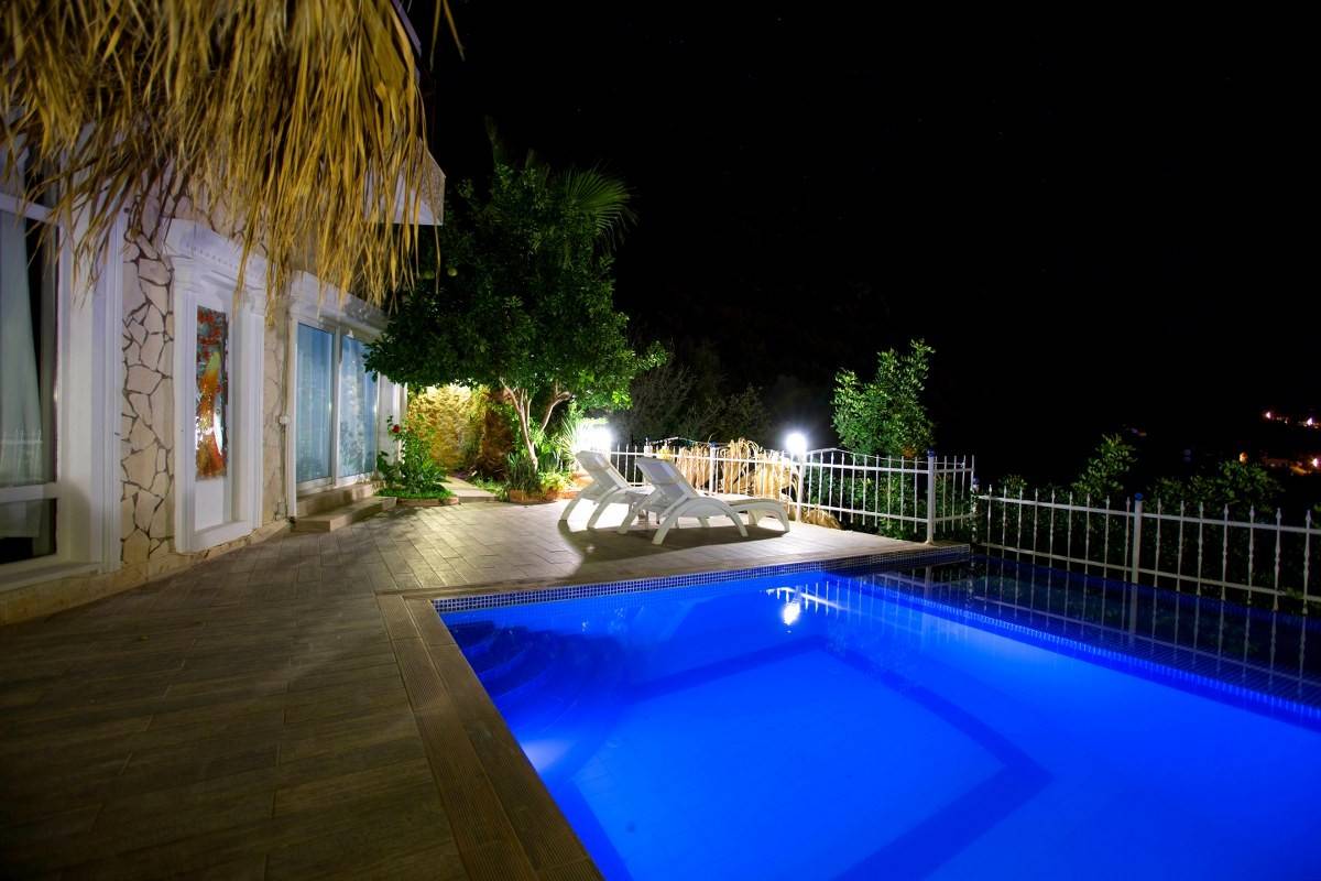Villa Likya, Antalya Kaş Kalkan Bölgesinin Akbel Mevkiinde bulunmaktadır. Villamız deniz manzaralı olup 4 yatak odası ile 8 kişilik konaklama kapasitesine sahip jakuzili tatil villasıdır.
