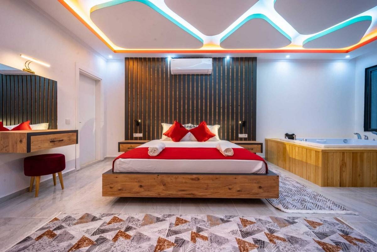 1. Yatak Odası : 1 adet çift kişilik yatak, komodin, kıyafet dolabı, makyaj masası, jakuzi ve banyo/WC bulunmaktadır.