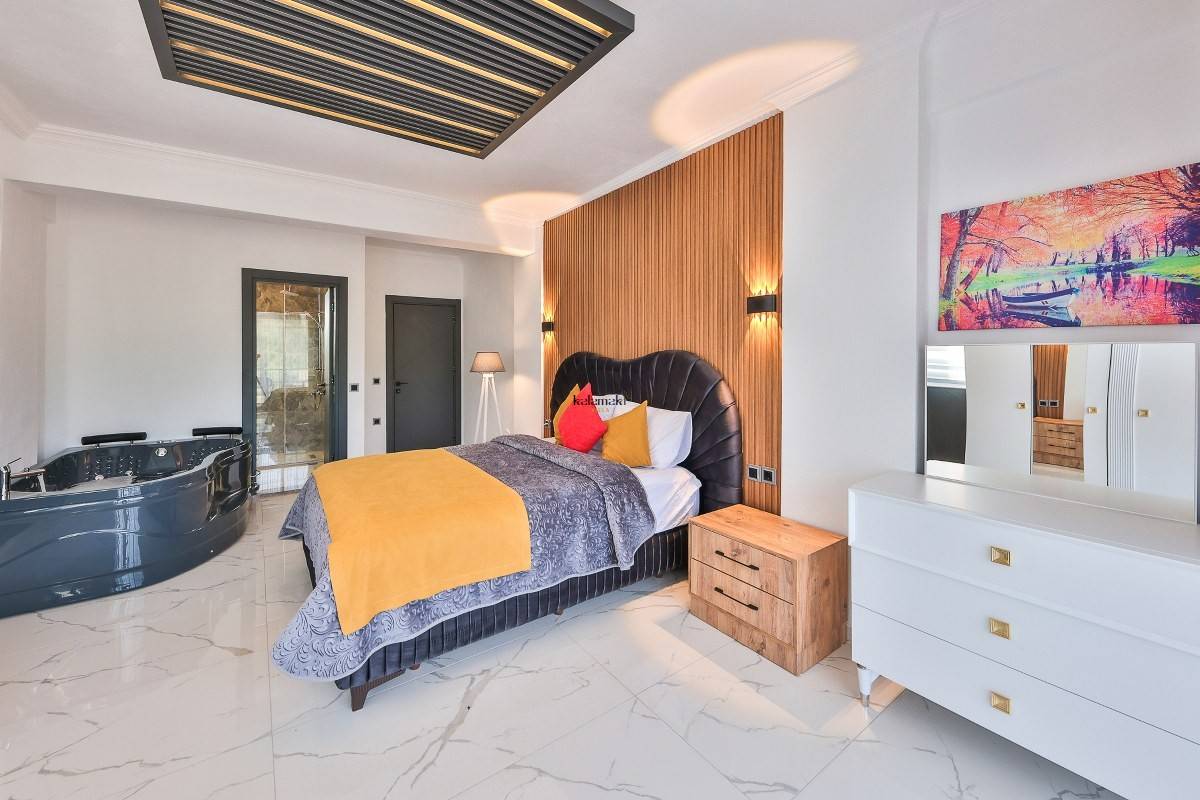 1. Yatak Odası : Süit aile yatak odasına 1 adet çift kişilik yatak, elbise, komodin, abajur, makyaj masası, klima , balkon ve balkonda mini orta sehpa ve sandalye ,jakuzi ve banyo/WC bulunmaktadır.