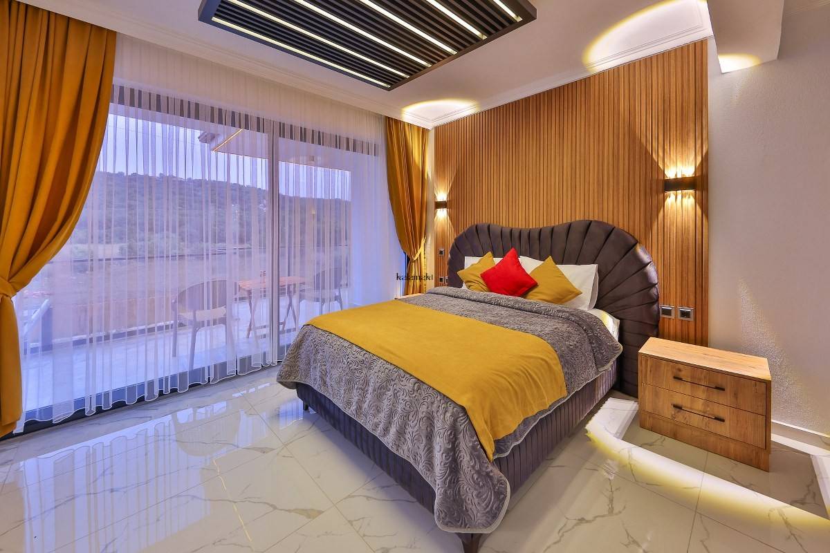 2. Yatak Odası : Süit aile yatak odasında 1 adet çift kişilik yatak, elbise dolabı, komodin, abajur, klima ve banyo/WC bulunmaktadır.