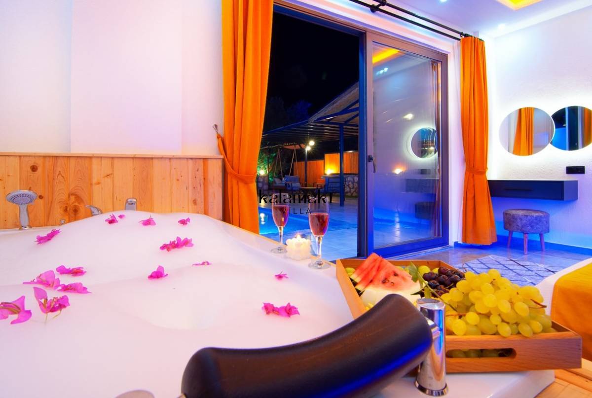 Kalkan Yeşilköy Bölgesi'nde yer alan korunaklı villamız 2 yatak odalı ve 4 kişilik konaklama kapasitesine sahiptir. Şehir gürültüsünden uzak, sakin konumda yer alan villamız korunaklı olması sebebiyle muhafazakar çekirdek aileler ve balayı çiftleri için oldukça idealdir. Villa Melo'nun geniş bahçesinde havuz, şezlong, salıncak, oturma köşesi, yemek masası ve barbekü yer almaktadır. Ayroca modern dizayn edilmiş yatak odalalrından birinde jakuzi yer almaktadır. Keyifli bir tatil için Villa Melo'yu tercih edebilirsiniz.