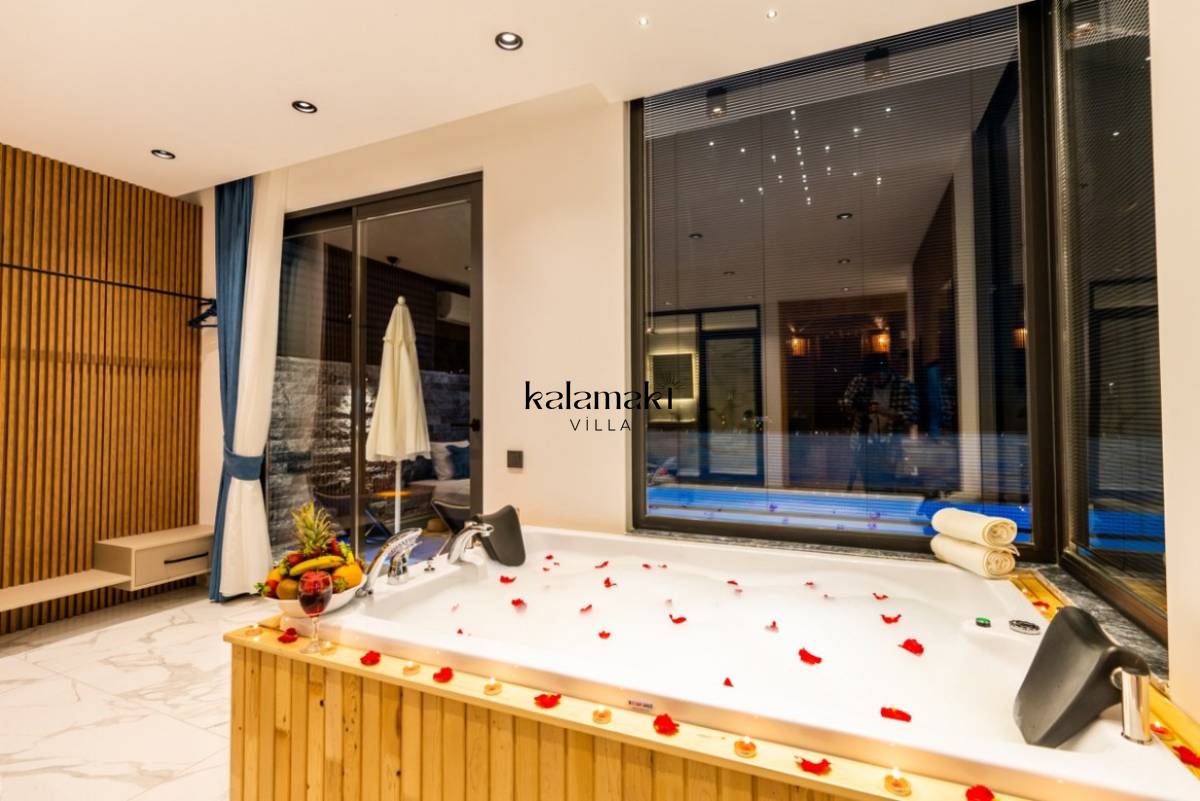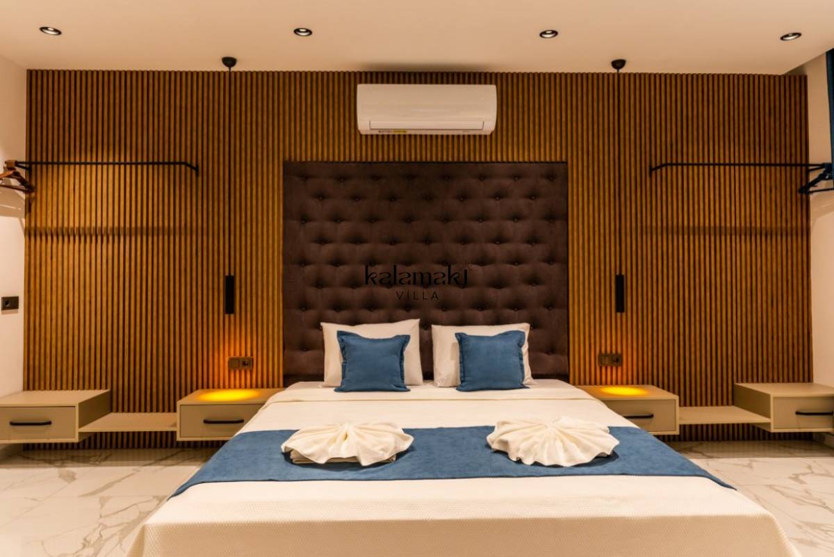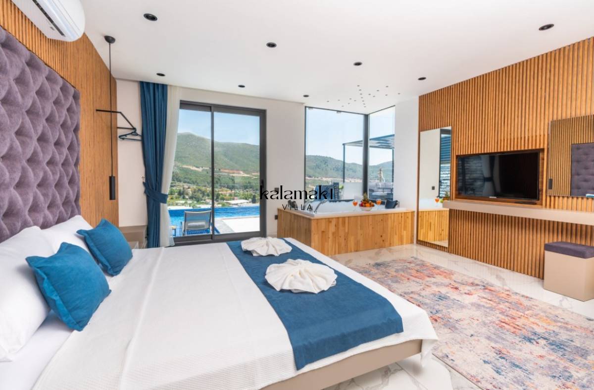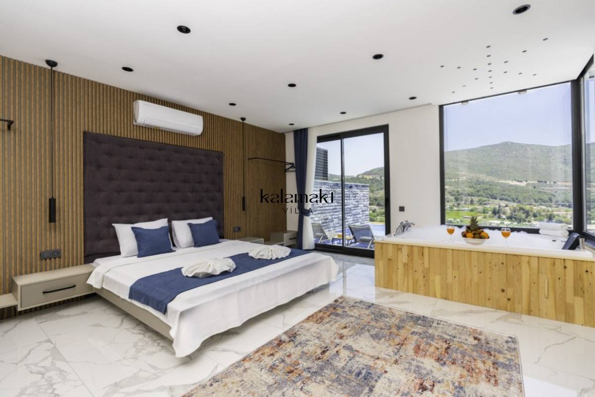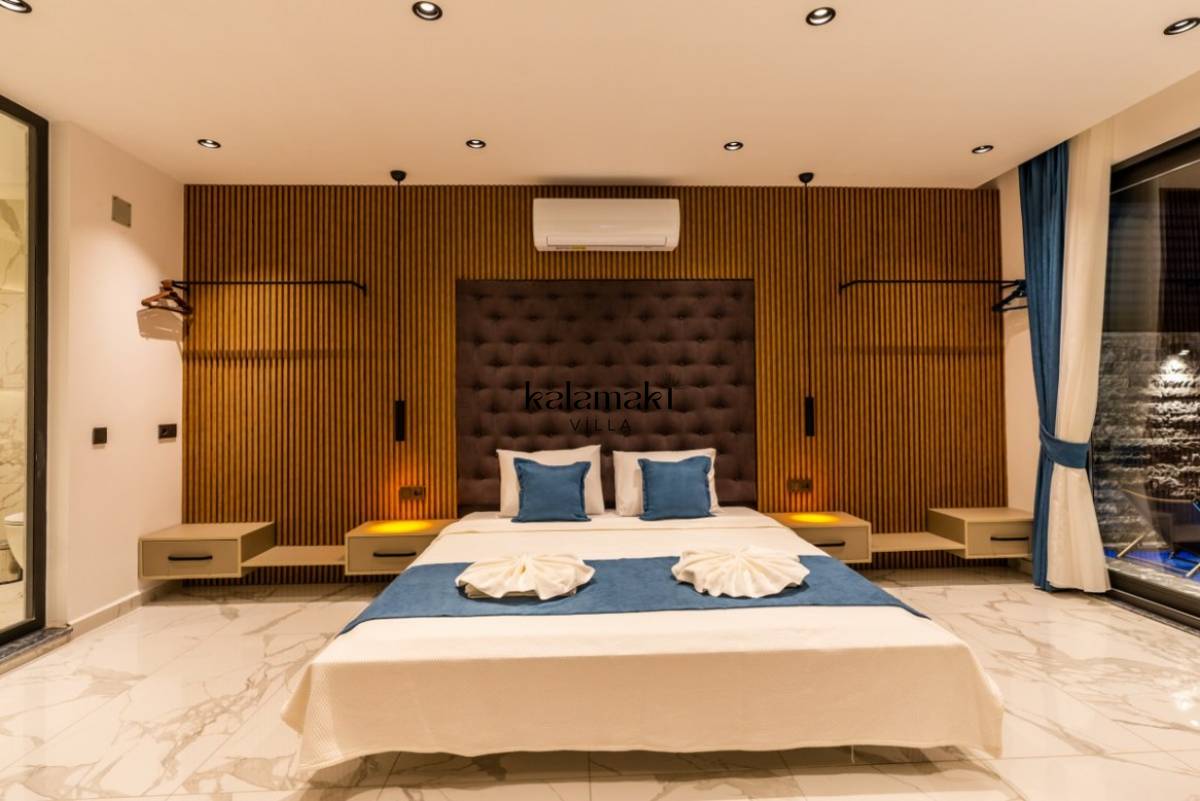 1. Yatak Odası; 1 adet çift kişilik yatak, jakuzi, TV, Sauna, elbise dolabı, makyaj masası, komodin, klima ve banyo-wc bulunmaktadır.