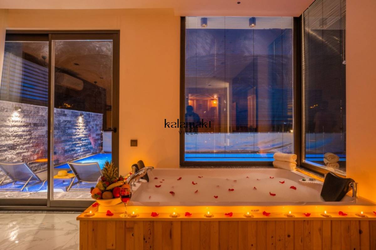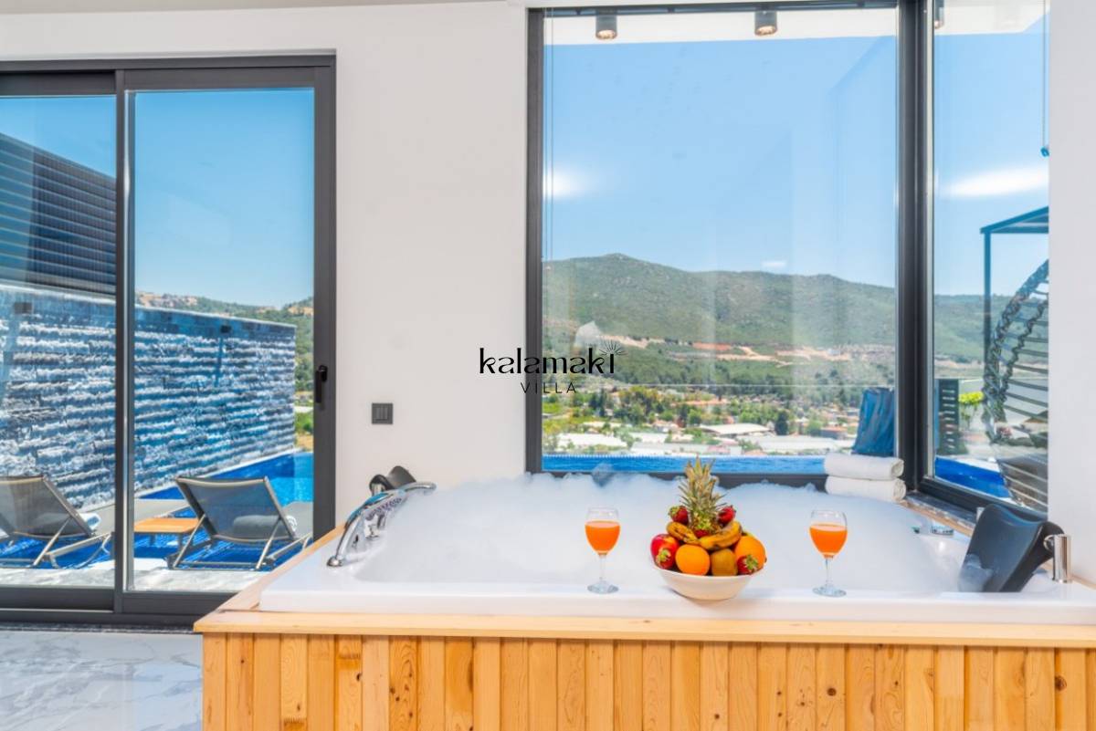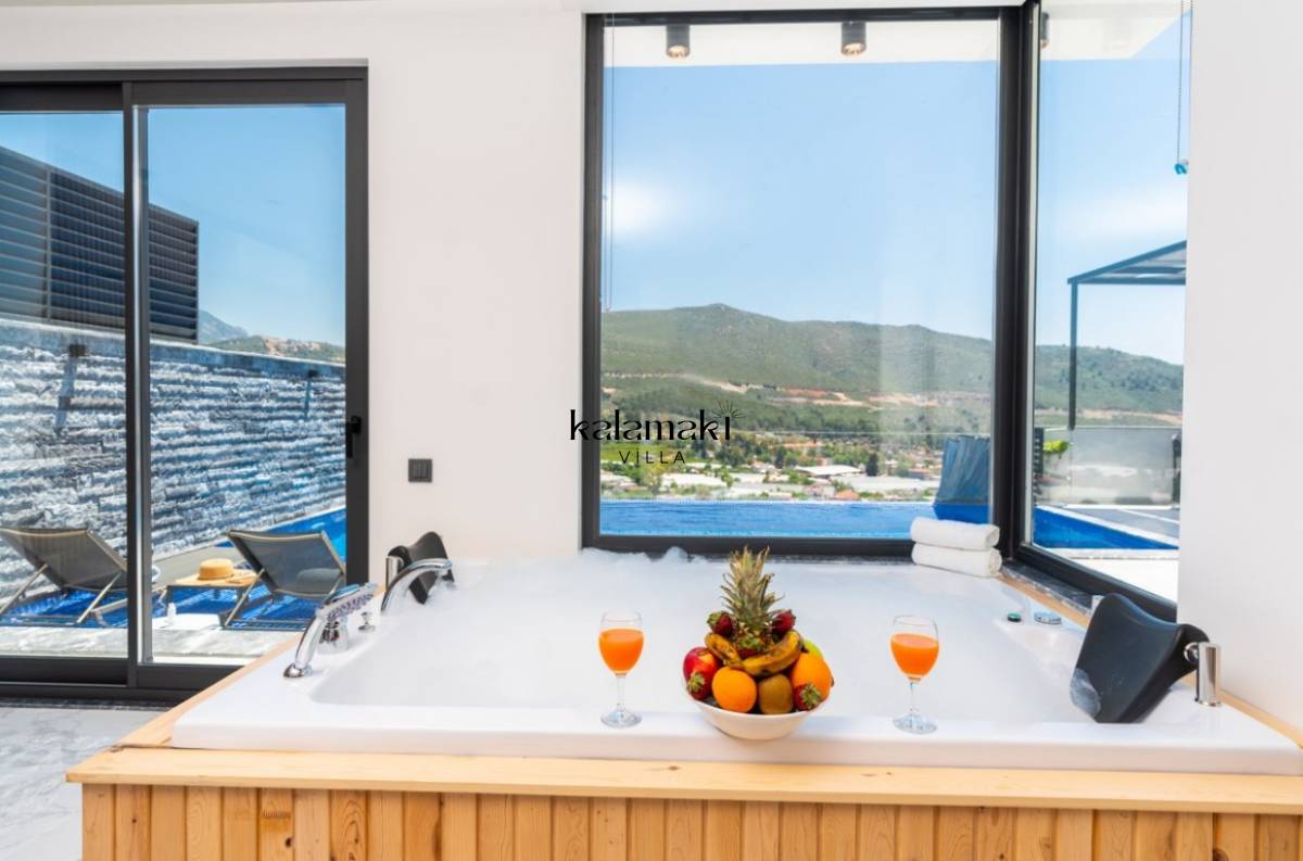 Antalya' nın eşsiz tatil beldelerinden birisi olan Kalkan'ın Yeşilköy Mevkiinde bulanan villamız, doğa ile iç içe, sessizliğin ve huzurun hakim olduğu bir tatil imkanı sunmaktadır. Villamız şık konsepte sahip olup, dışarıdan gözükmeyen havuz terasına sahip barbekü alanı ile 2 kişilik aile ve arkadaş gruplarına konaklama imkanı vermektedir.