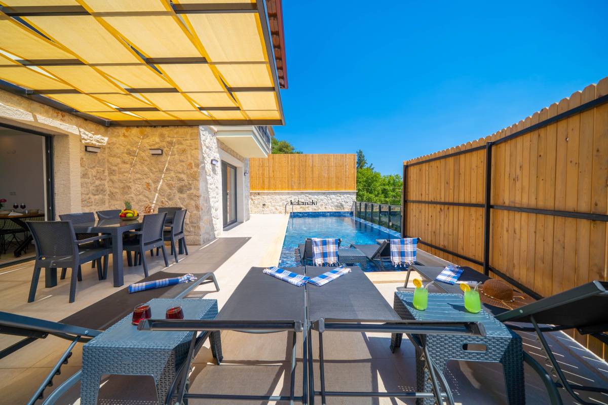 Muhafazakar konseptte olmayan bu villa, dışarıdan havuz alanı görünür olacak şekilde tasarlanmıştır. Güneşlenmeyi ve serinlemeyi özgürce yaşamak isteyen misafirler için uygundur.