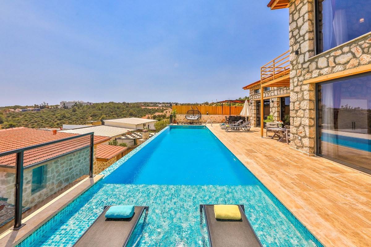 Kalkan Patara bölgesine konumlandırılmış özel yüzme havuzlu kiralık lüks tatil villasıdır. Kiralık Villa summer Breeze, muhafazakar villalar, jakuzili villalar, ısıtma havuzlu villalar, lüks villalar, kapalı havuzlu villalar, doğa içerisinde villalar, deniz manzaralı villalar, çocuk havuzlu villalar ve denize yakın villalar kategorisinde yer almaktadır. 4 yatak odalı 8 kişi konaklama olanağına sahiptir. Geniş ailelerin popüler tercihlerinden olan villamızın yapımı 2022 yılında tamamlanmıştır. Yüzme keyfinizi ikiye katlayacak olan geniş havuzu, çocuklarınızın kullanımına uygun havuz alanı ve kış sezonunda da tatil beklentileriniz göz önüne alınarak hizmetinize sunulan kapalı ısıtmalı havuzu ile kendinizi özel hissedeceğiniz villamız unutamayacağınız bir tatil imkanına sahiptir. Misafirlerimizin beklentilerinin farkında olarak en ince detaylara kadar planlanan villamız tüm yıl boyunca iple çektiğiniz tatilinize ev sahipliği yapmaya aday seçenekler arasında en üst sırada yer almaktadır. Villamız mutfak kısmında misafirlerimizin tüm ihtiyaçlarını karşılayacak şekilde bütün mutfak araç gereçleri bulunmaktadır. Mükemmel arsa üzerine kurulmuş olan villamız deniz, doğa ve göl manzarasına sahip olup markete restorana sadece 2 dakikalık yürüme mesafesindedir. İç mekanı da dış ambiyansla bütünleşen detaylar sunan villamız modern ve konforlu mobilyalara sahip olup şehrin hengamesinden uzakta ve doğal atmosferin dokusuna uygundur. Bölgenin doğal yapısına nazır bir manzara ile huzurlu bir tatil imkanı sunan Villa Summer breeze kalabalık aile ve gruplar için ideal seçenekler arasındadır.