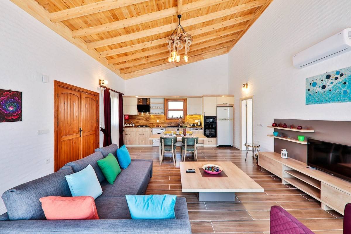 Salon : Oturma grubu, televizyon, uydu alıcısı, klima, kablosuz internet ve havuz terasına çıkış bulunmaktadır.