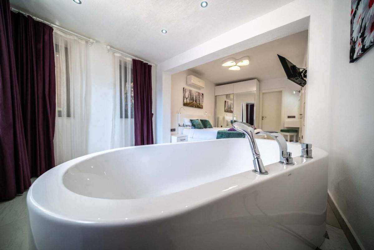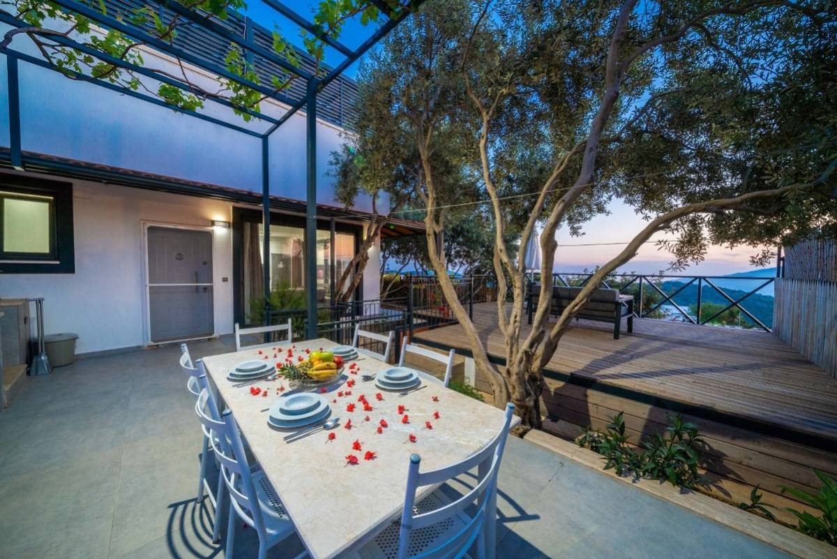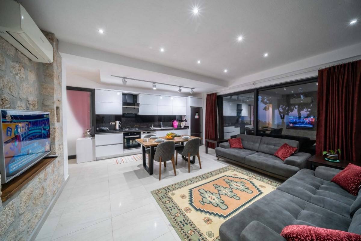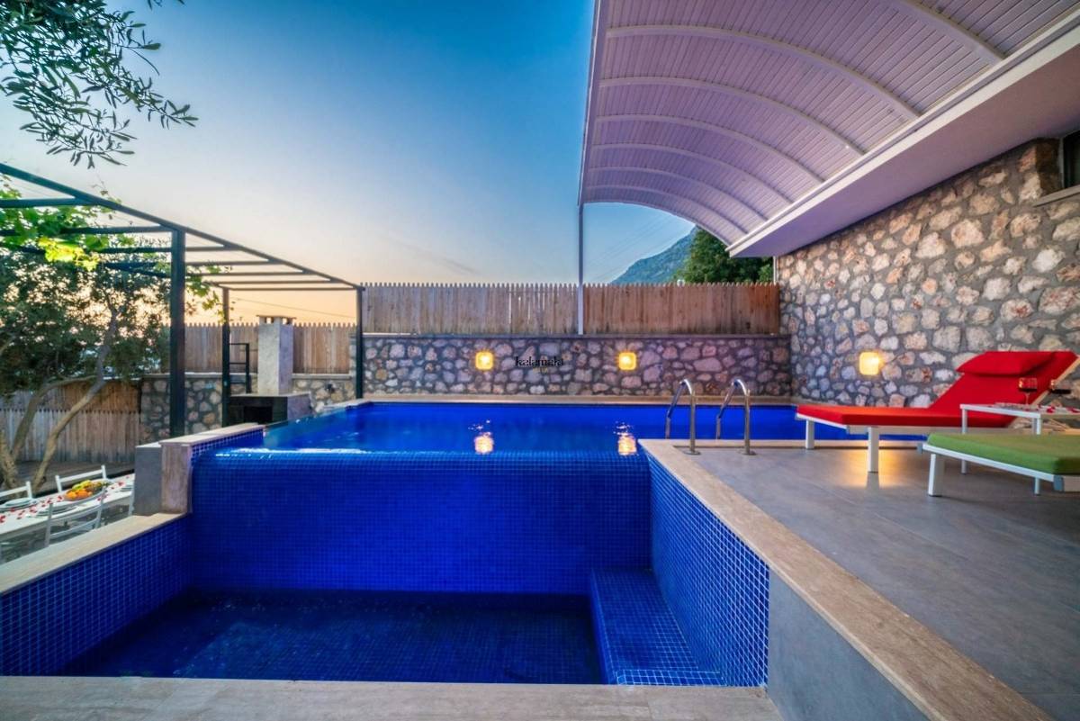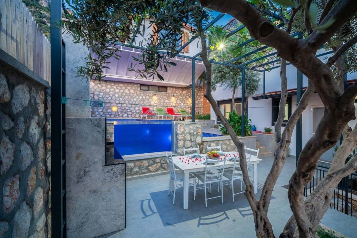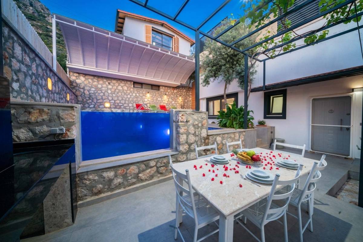 Villa Therapy Aqua ; Kalkan Kördere mevkiide konumlanan villamız 2 yatak odalı 4 kişi konaklama kapasitelidir.Villamızın suit yatak odasında küvet bulunmaktadır.Kalkan şehir merkezine yaklaşık 3 km mesafede olan villamız bahçesi ve özel dizayn bir yüzme havuzu ile farklı bir tasarıma sahiptir.Villamızın en farklı özelliği havuzun ön kısmının cam olmasıdır. Havuz alanı korunaklı olup dışarıdan gözükmemektedir. Bu sayede muhafazakar aileler ve balayı çiftleri için ideal tatil villasıdır. Kaliteli ve konforlu eşyalar ile tasarlanan villamız eşsiz kalkan ve kısmi deniz manzarasına sahiptir.