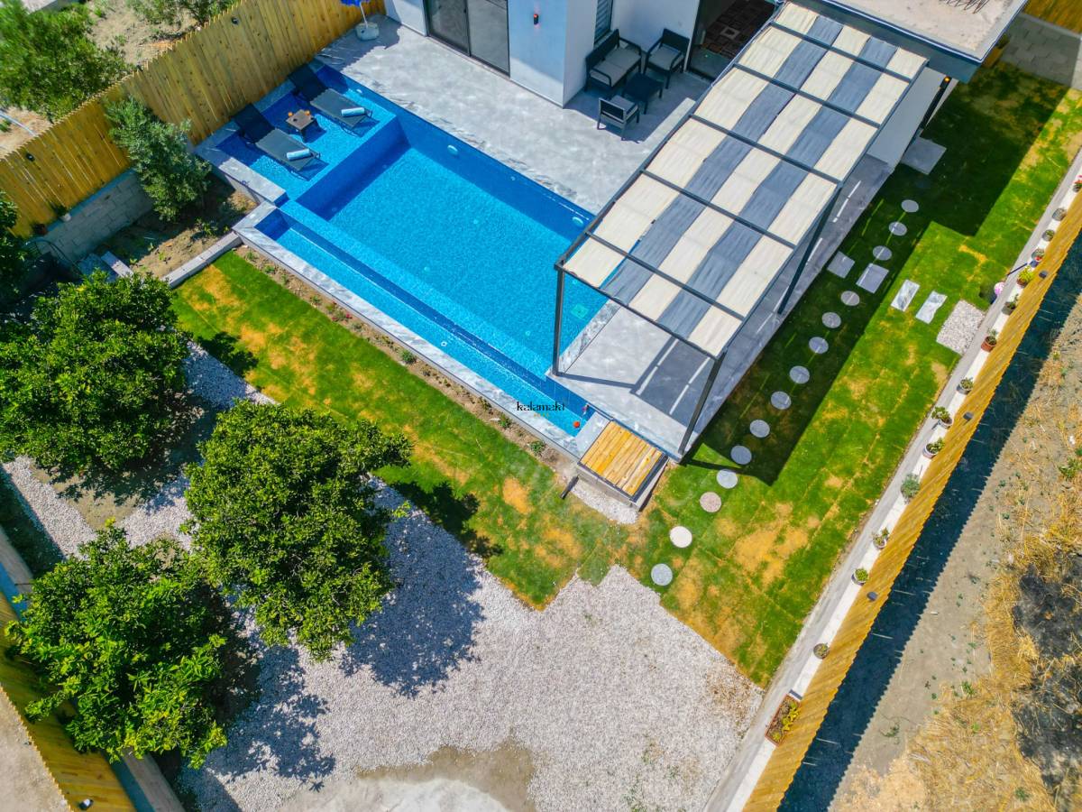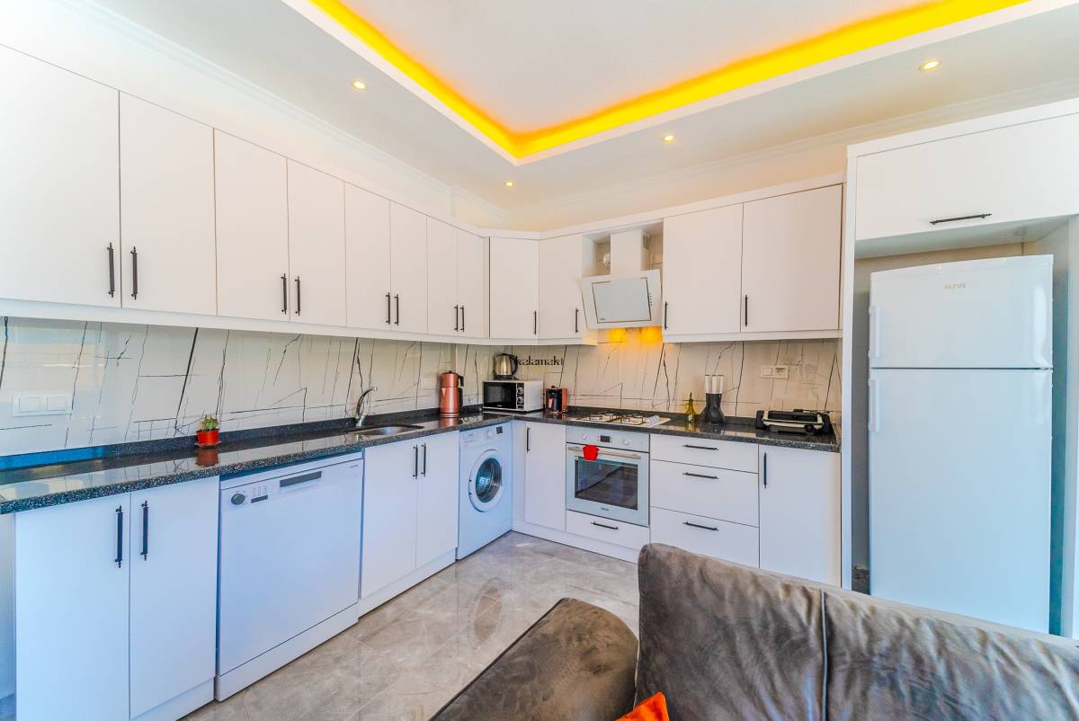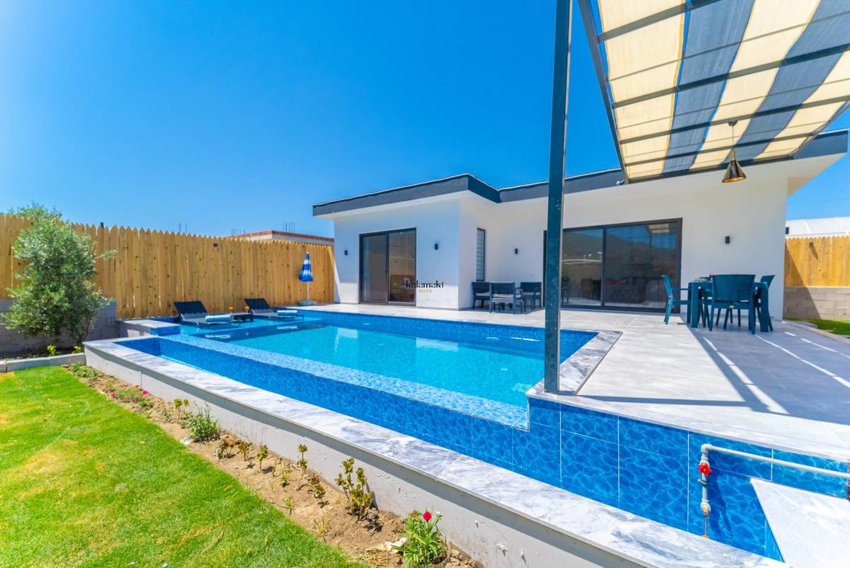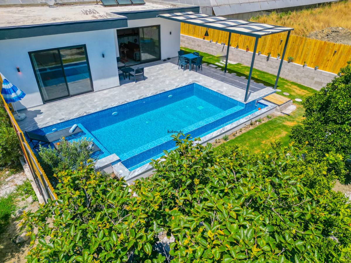 Salonda ise mutfak, televizyon, klima ve rahat bir oturma grubu bulunmaktadır. Bu sayede misafirler, konforlu bir şekilde vakit geçirebilirler. Villa Turan, sakin ve özel bir konaklama deneyimi sunarak misafirlerine unutulmaz bir tatil fırsatı sunmaktadır