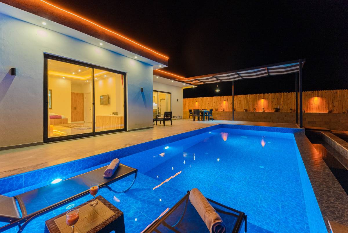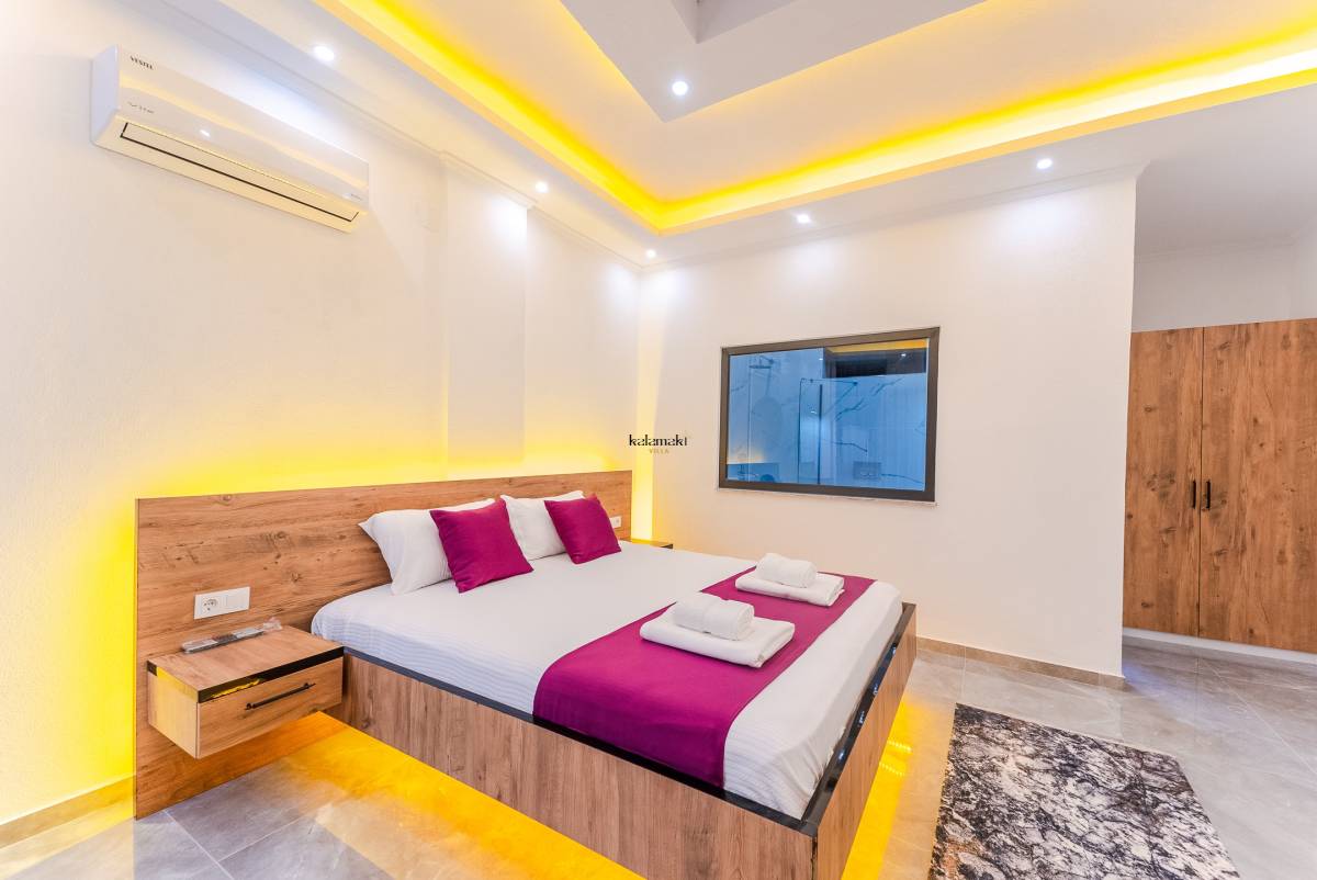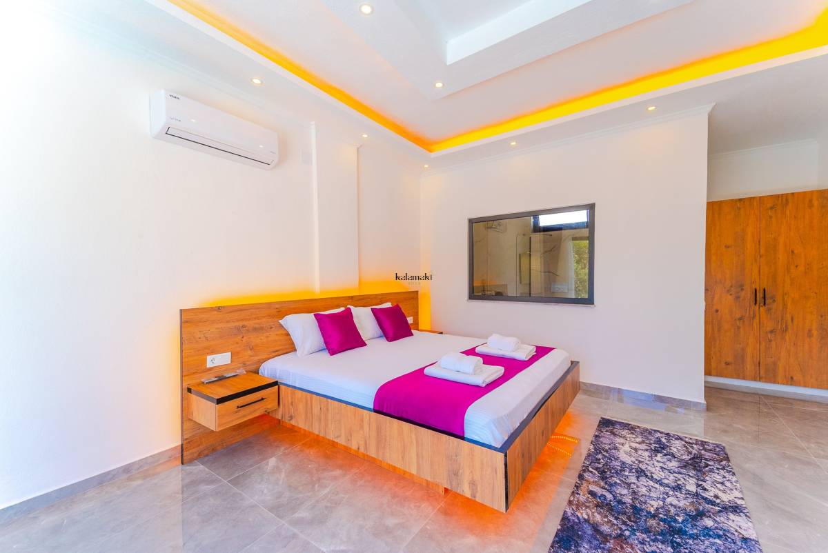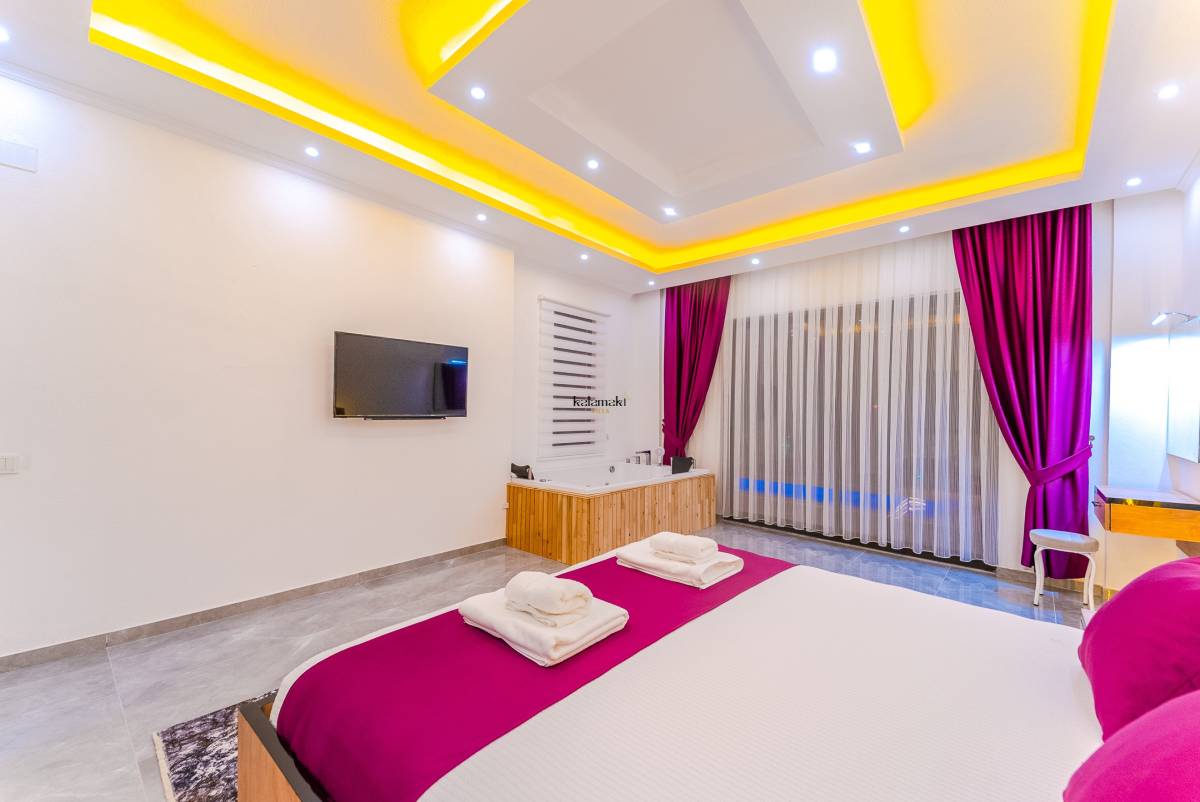 Kiralık Villada bir yatak odası ve bir banyo bulunmaktadır. Yatak odasında çift kişilik yatak, klima ve özel bir jakuzi yer almaktadır. Banyo ise modern olanaklarla donatılmıştır.