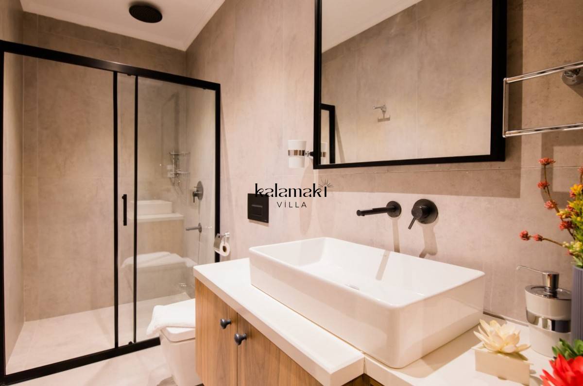 Yatak Odası 3: Rain Forest duşlu çift kişilik en-suite duş odası, kral yatak, boy aynalı gardırop, tuvalet masası, akıllı TV, saç kurutma makinesi, klima, muhteşem deniz manzarası.