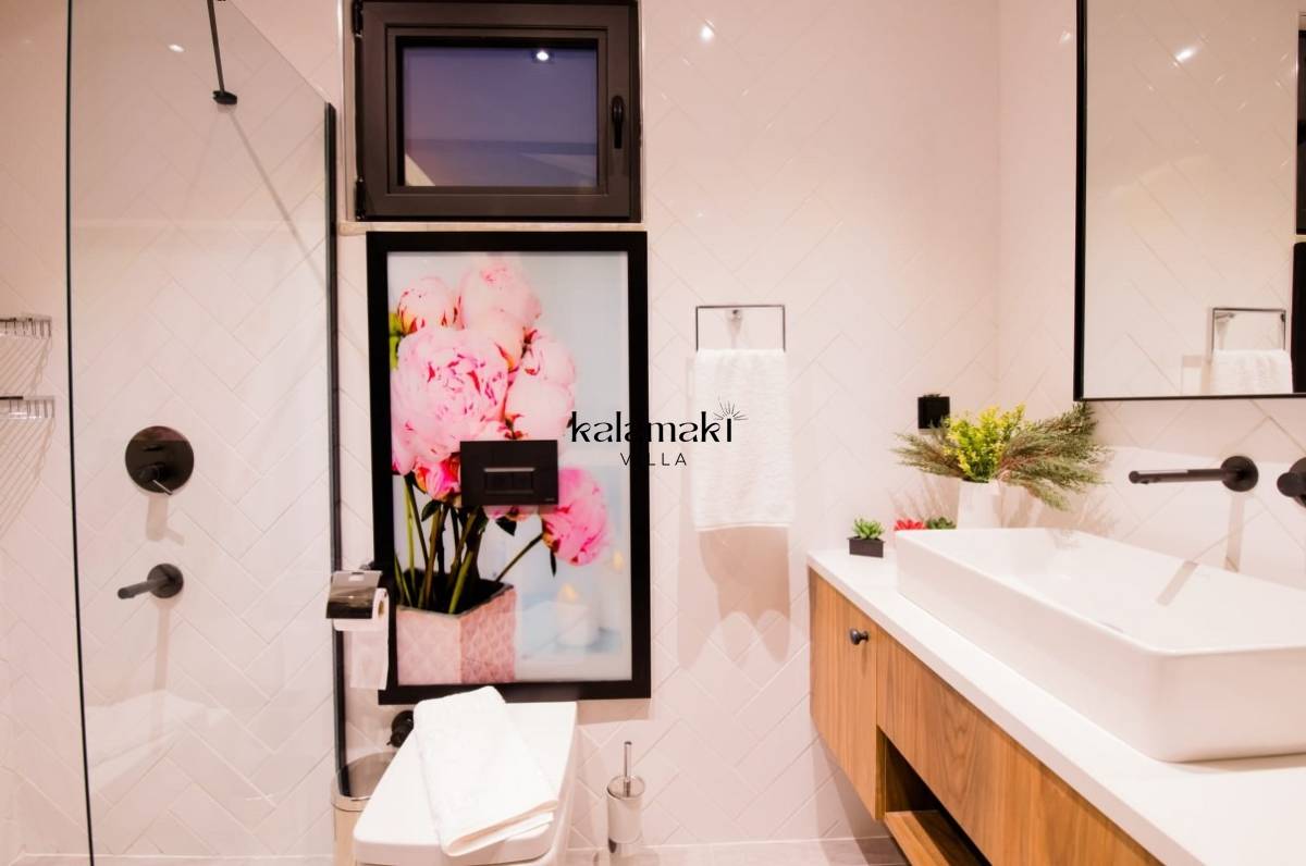 Yatak Odası 3: Rain Forest duşlu çift kişilik en-suite duş odası, kral yatak, boy aynalı gardırop, tuvalet masası, akıllı TV, saç kurutma makinesi, klima, muhteşem deniz manzarası.
