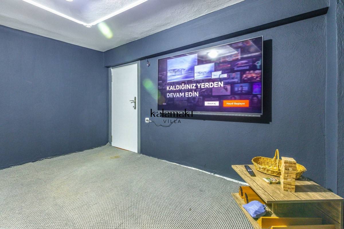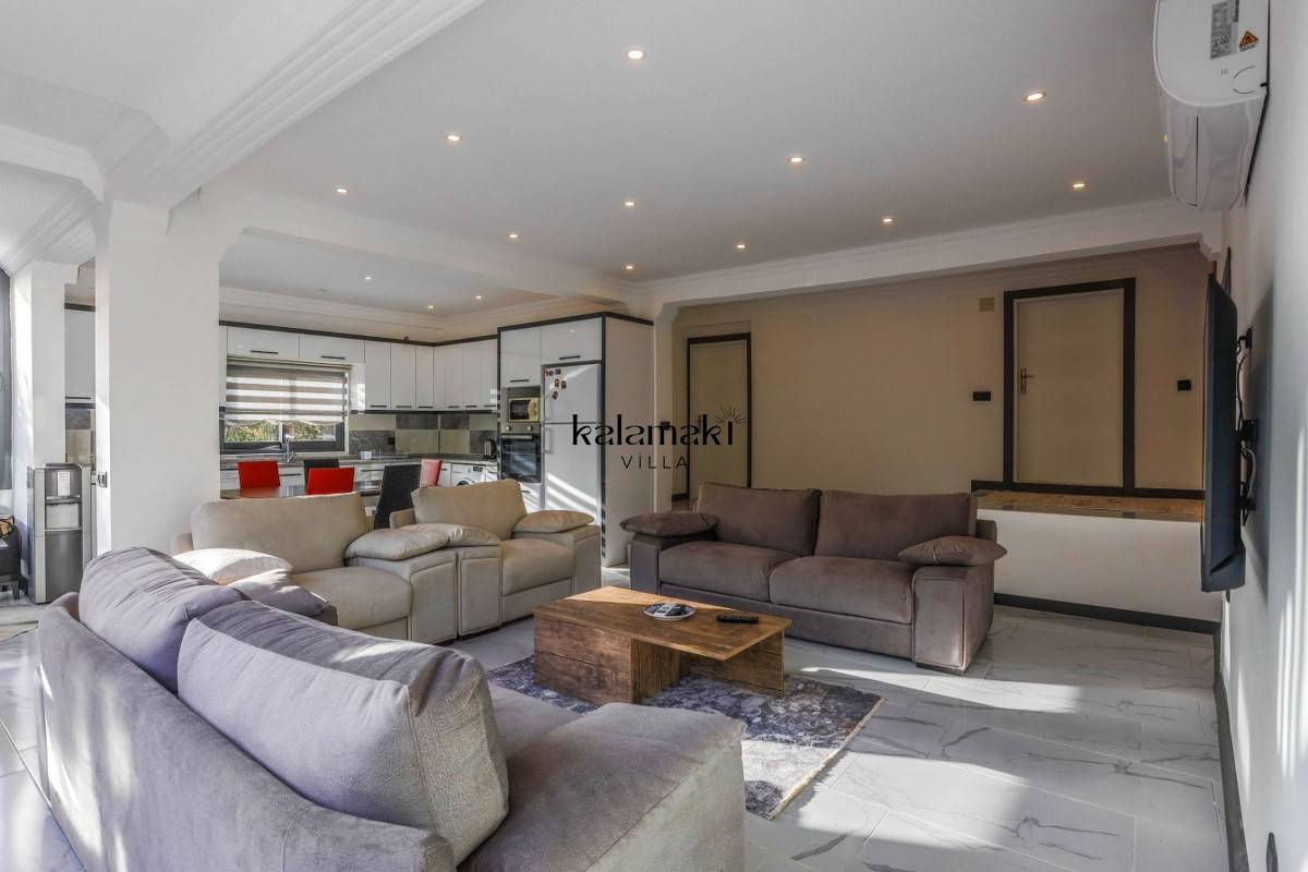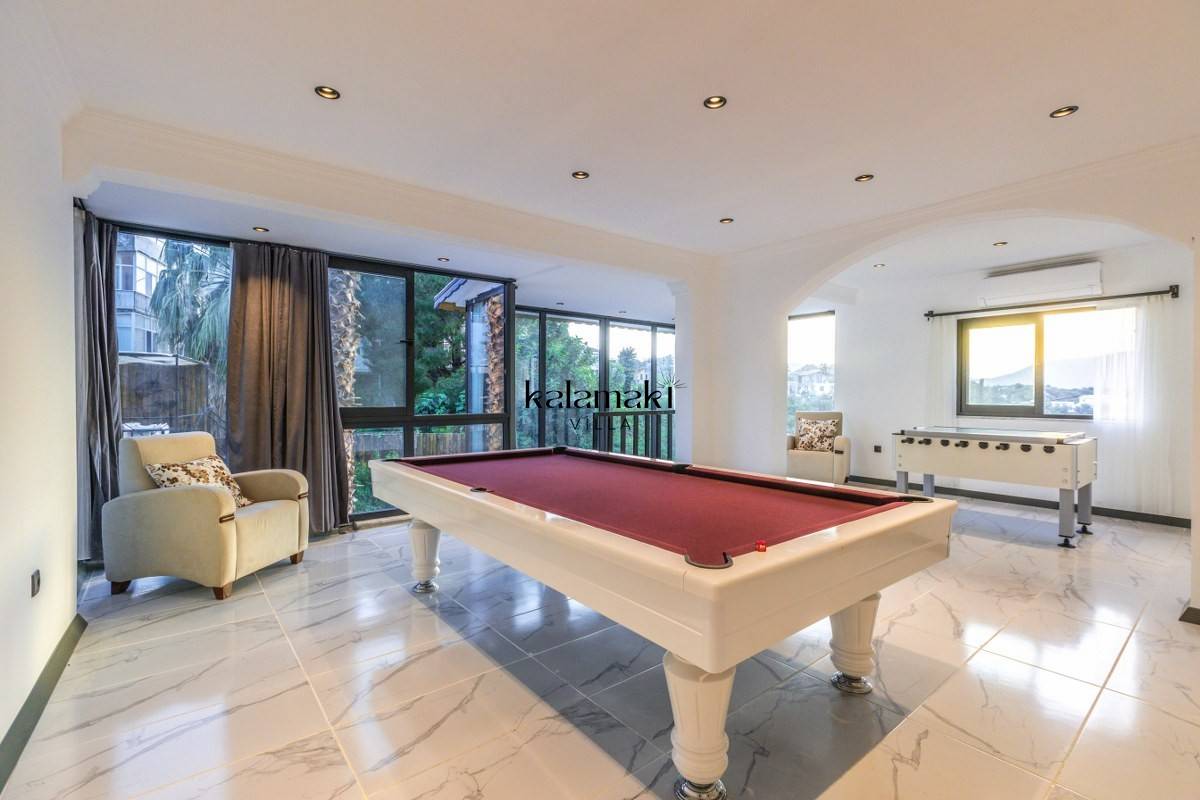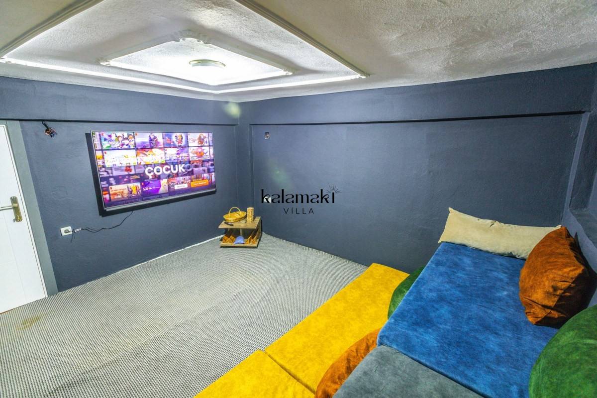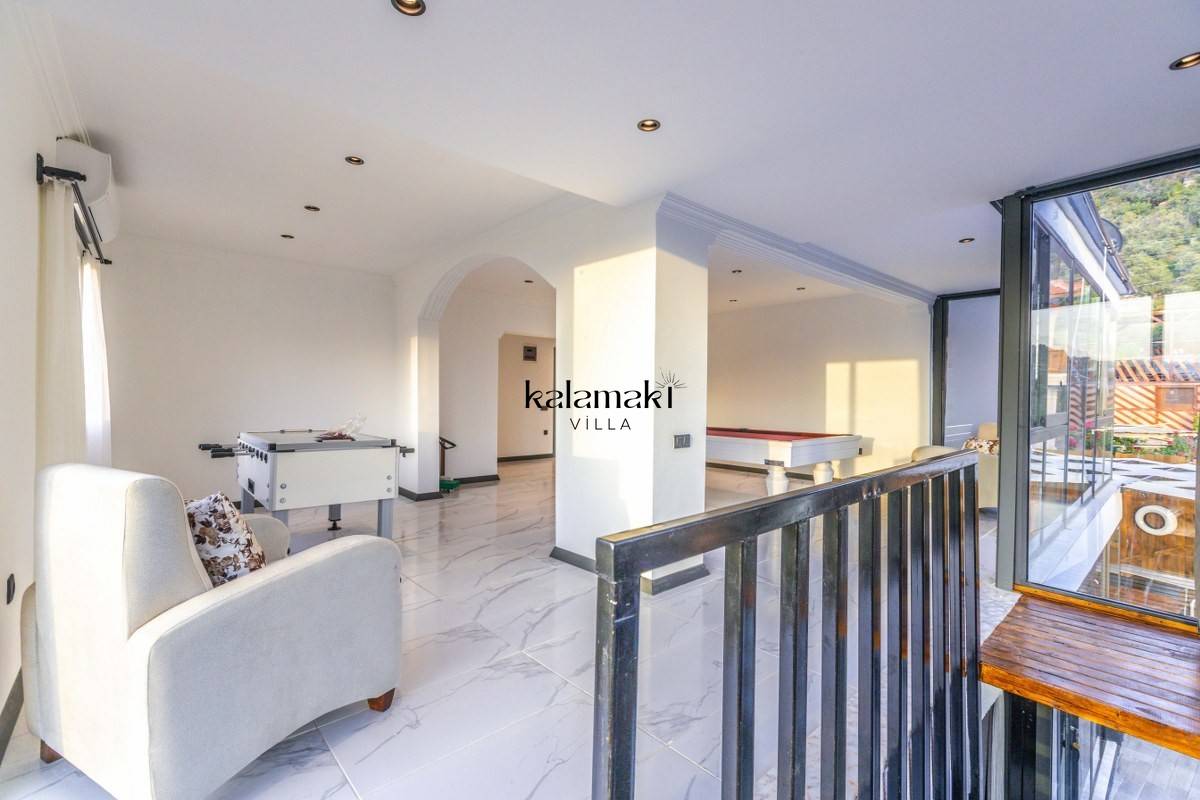 Salon: Oturma grubu, klima, televizyon, sehpa, uydu alıcı bulunmaktadır. Havuz terasına çıkış yapılabilmektedir.