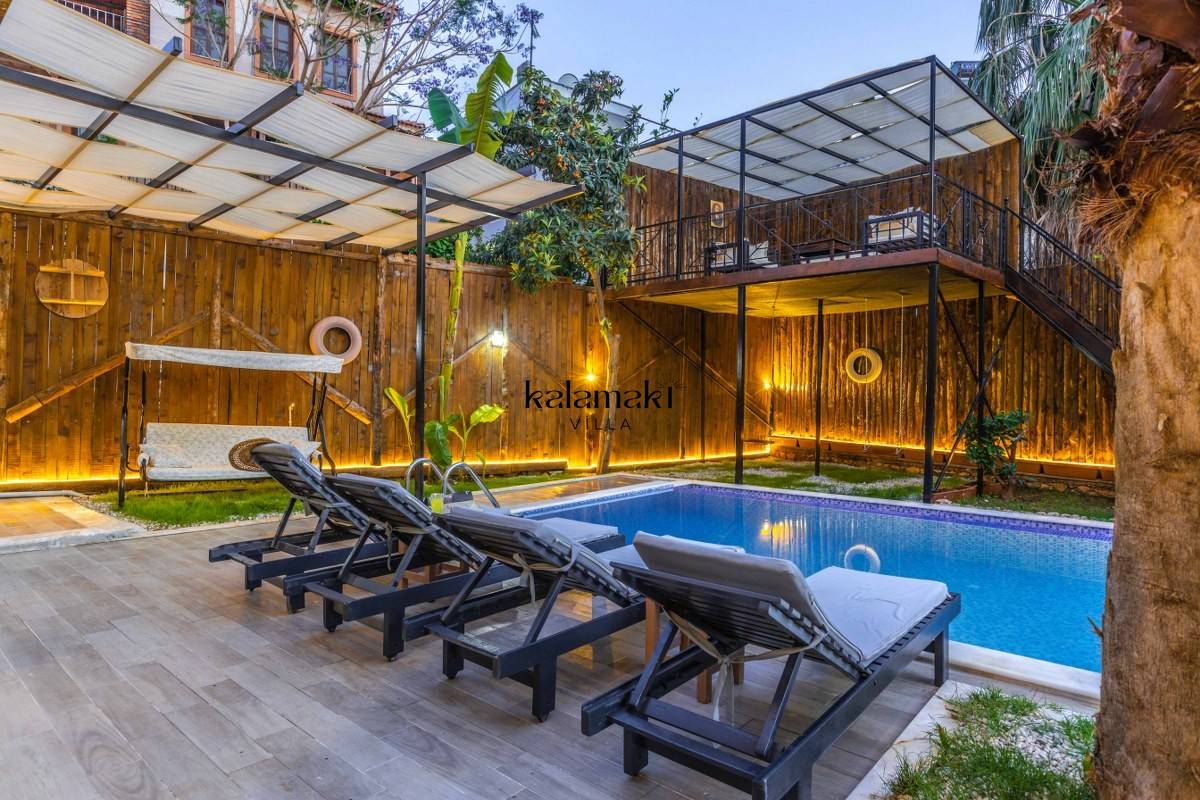 Villa Zülfiye Kalkan/Ulugöl Mevkiinde konumlandırılmış,bahçe alanı keyifli yaz akşamları düşünülerek dizayn edilmiş,4 yatak odasına sahip,8 kişilik konaklama kapasitesinde bir tatil villasıdır. Geniş aileler ve kalabalık arkadaş grupları için ideal olan Villamız oldukça şık dizayna sahip olup sizlere keyifli bir tatil deneyimi sunmaktadır. Ferah iç dizaynı,Oldukça geniş ve oksijene hakim bahçe-havuz terasıyla unutulmaz bir tatil imkanı sunmaktadır. Merkezi lakosyonu sayesinde bir çok ihtiyaçlarınızı kolaylıkla karşılayabilirsiniz.