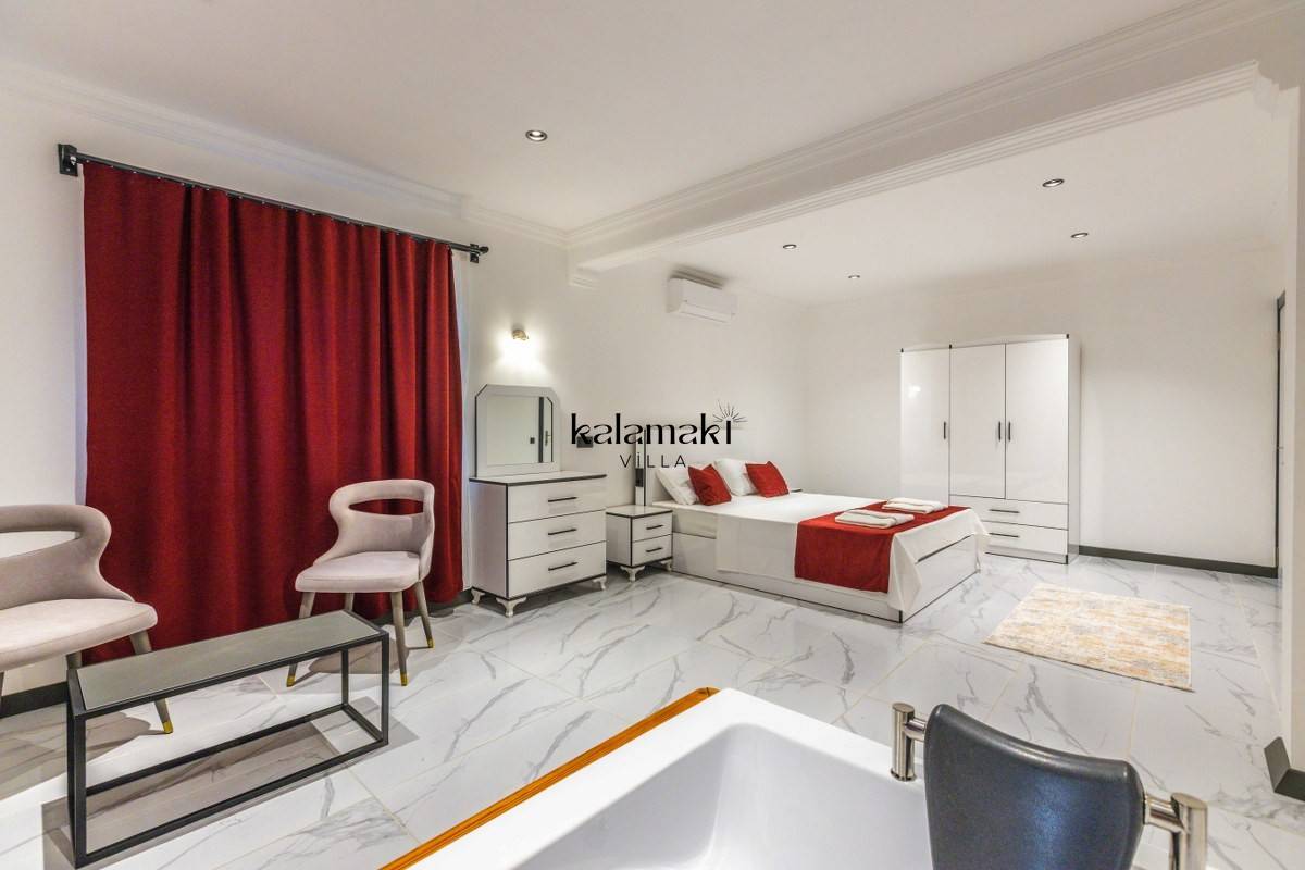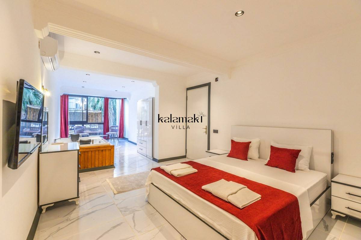 1.Yatak Odası: 1 adet çift kişilik yatak, klima, televizyon, komodin, makyaj masası, elbise dolabı, jakuzi, banyo ve tuvalet bulunmaktadır