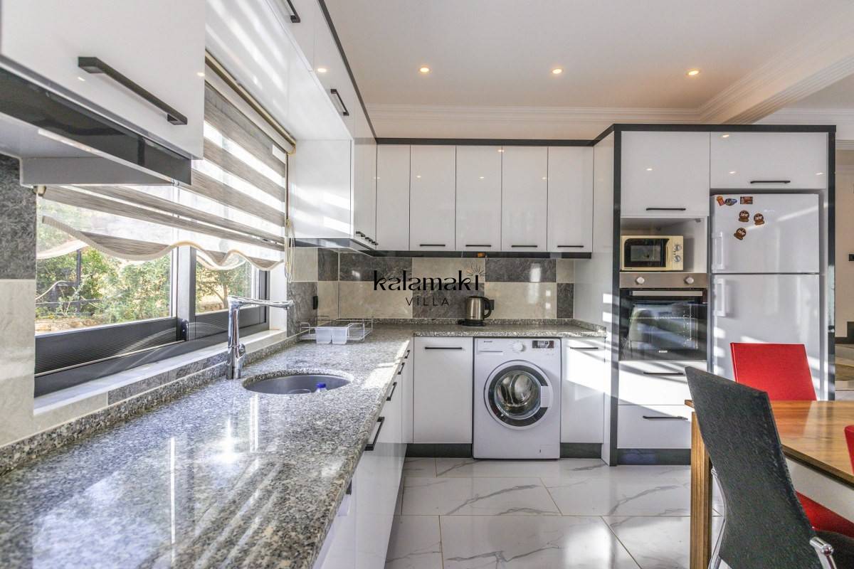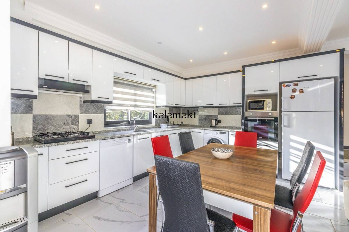 Amerikan mutfak: buzdolabı, bulaşık makinesi, fırın, 4'lü ocak, kettle, tost makinesi, yemek masası, yemek takımları, çatal ve bıçak takımları, tencere ve tava takımları, bardaklar bulunmaktadır.