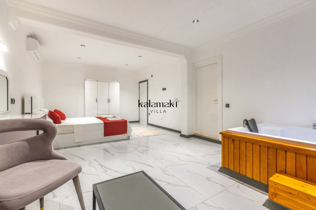 3.Yatak Odası: 1 adet çift kişilik yatak, klima, komodin, makyaj masası, elbise dolabı, jakuzi, banyo ve tuvalet bulunmaktadır