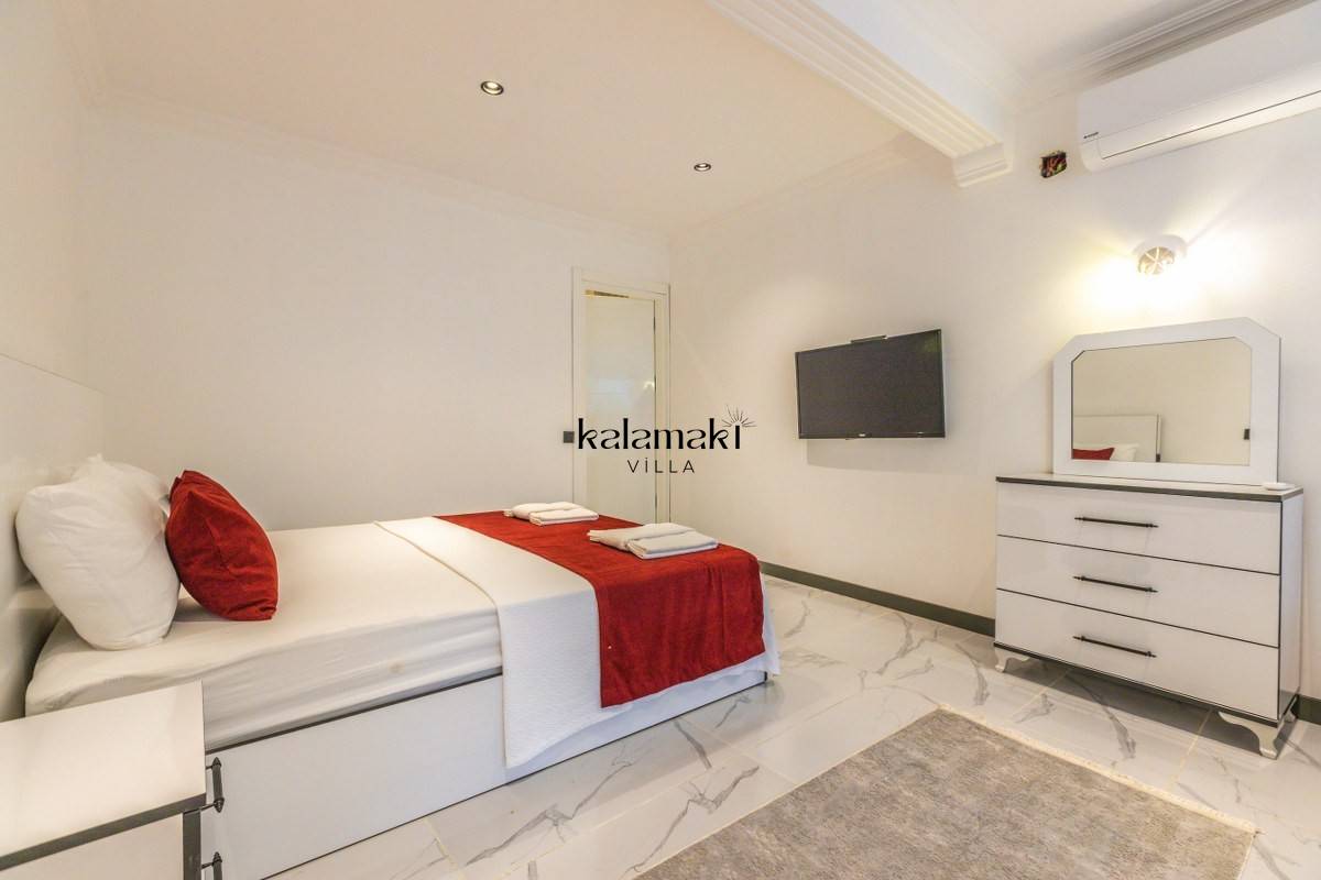 2.Yatak Odası: 2 adet tek kişilik yatak, klima, komodin, makyaj masası, elbise dolabı, banyo ve tuvalet bulunmaktadır.